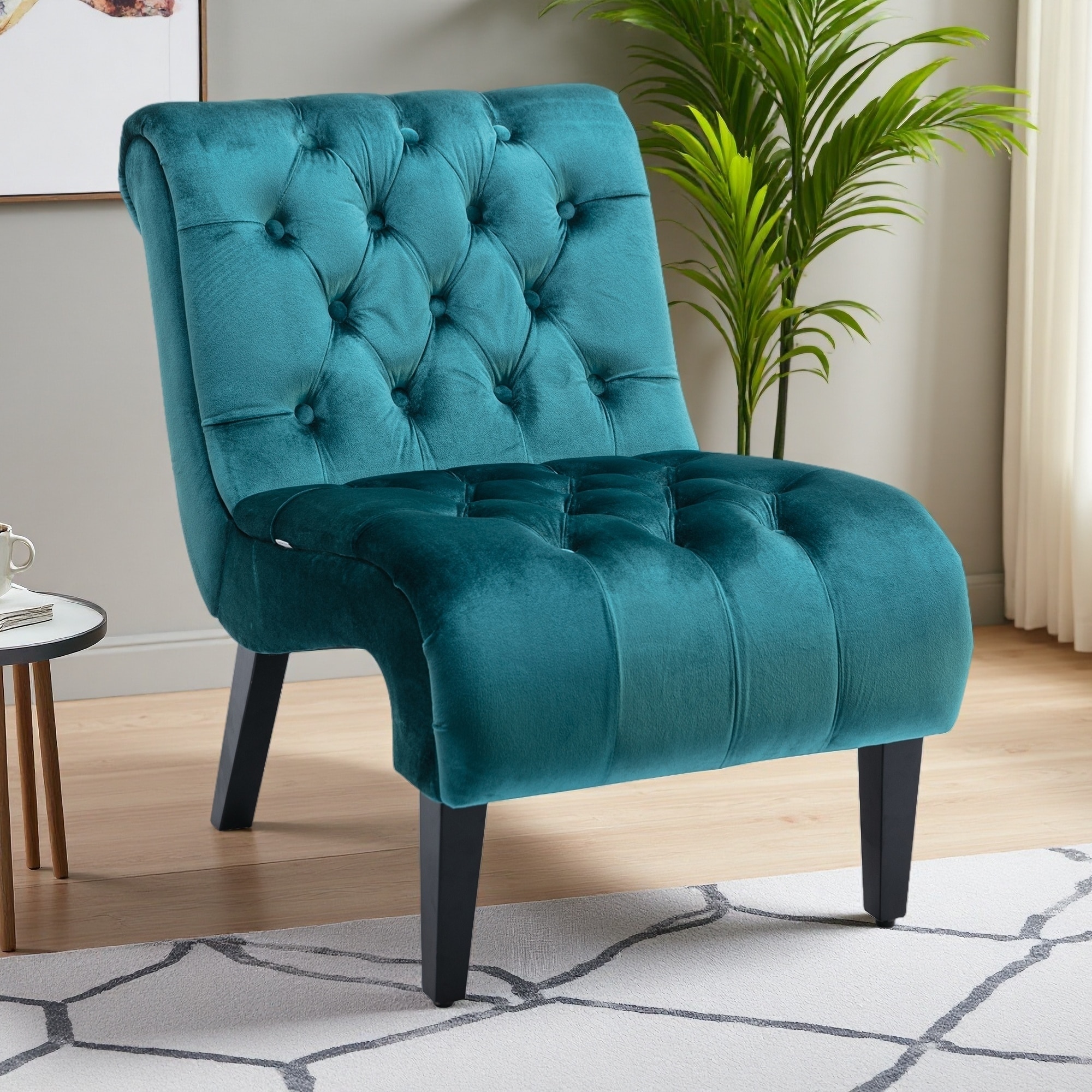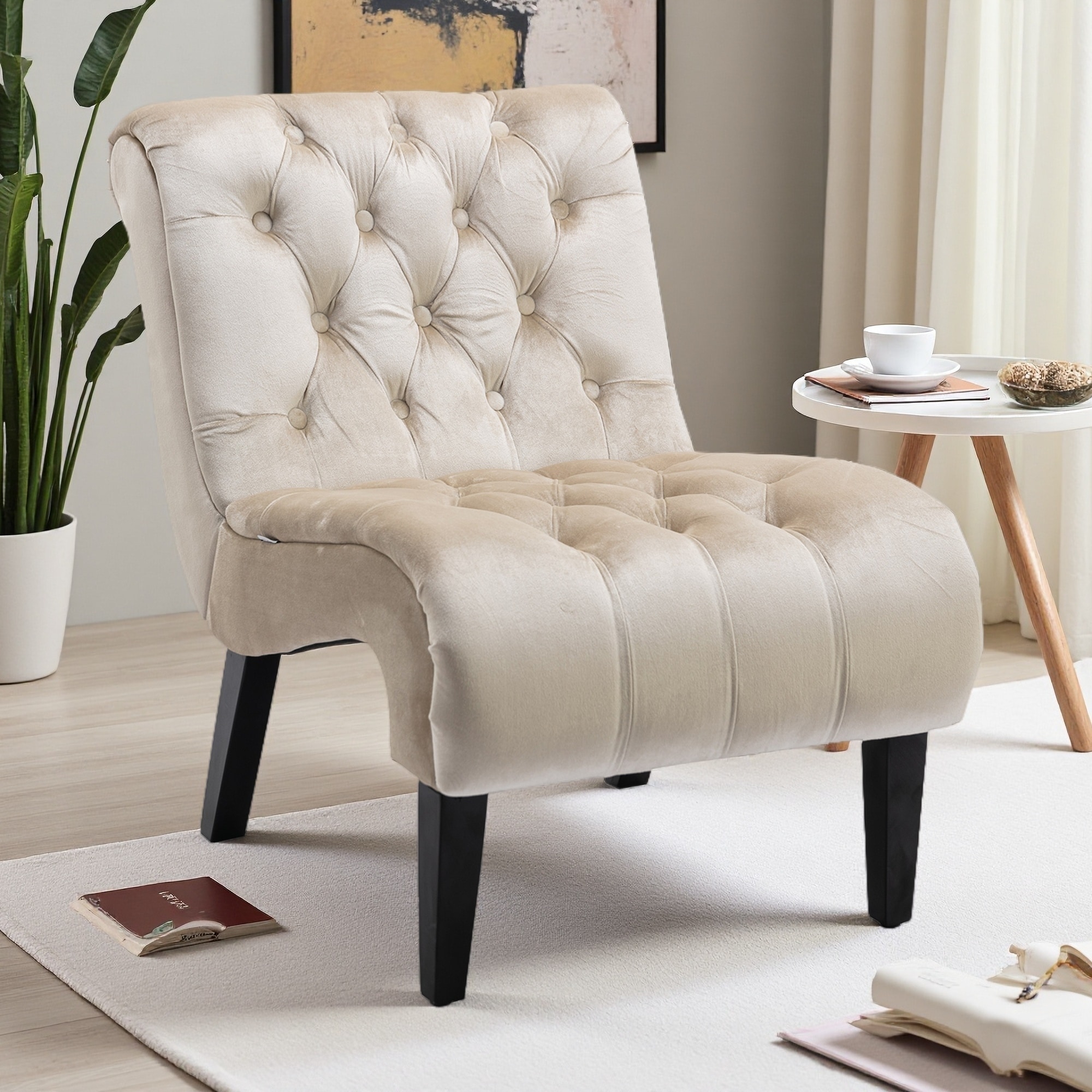 Velvet Armless Accent Chair with Button Tufted Upholstery, Foam Cushion & Solid Wood Legs
