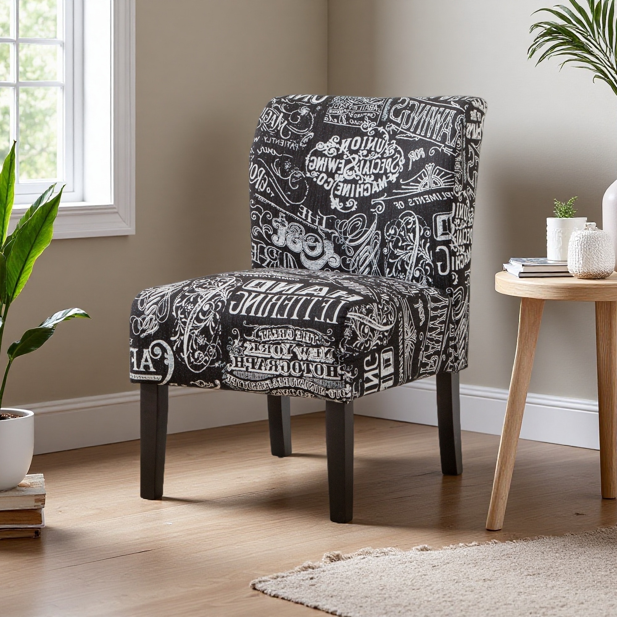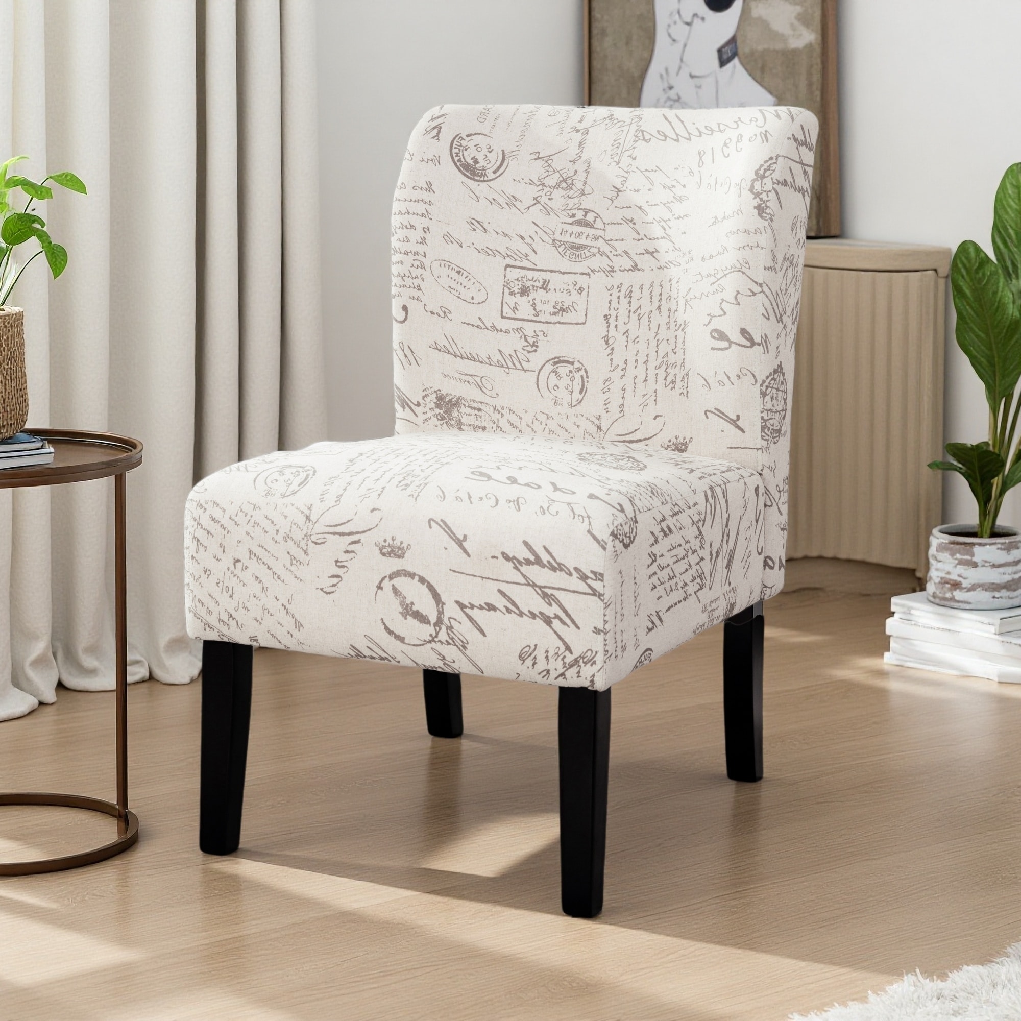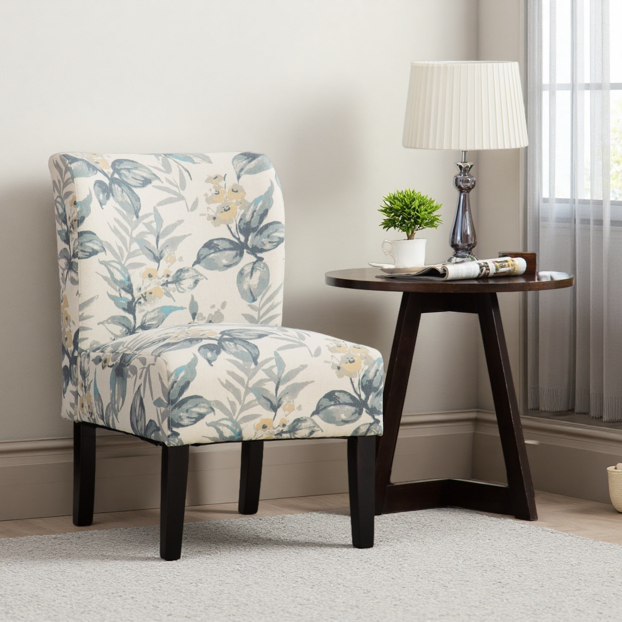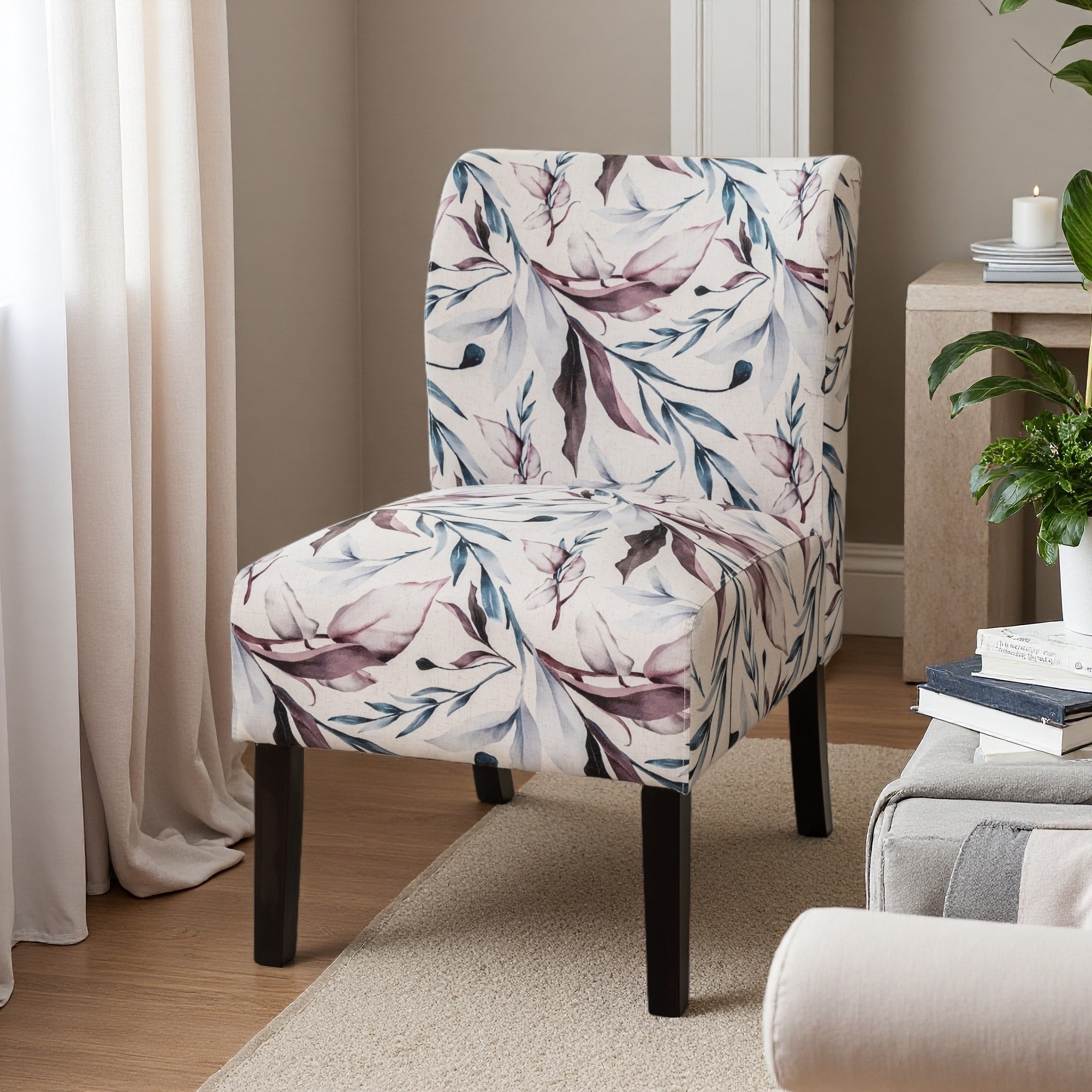 Print Fabric Armless Accent Chair with Purple Floral Pattern, Sturdy Frame & Low-Profile Design