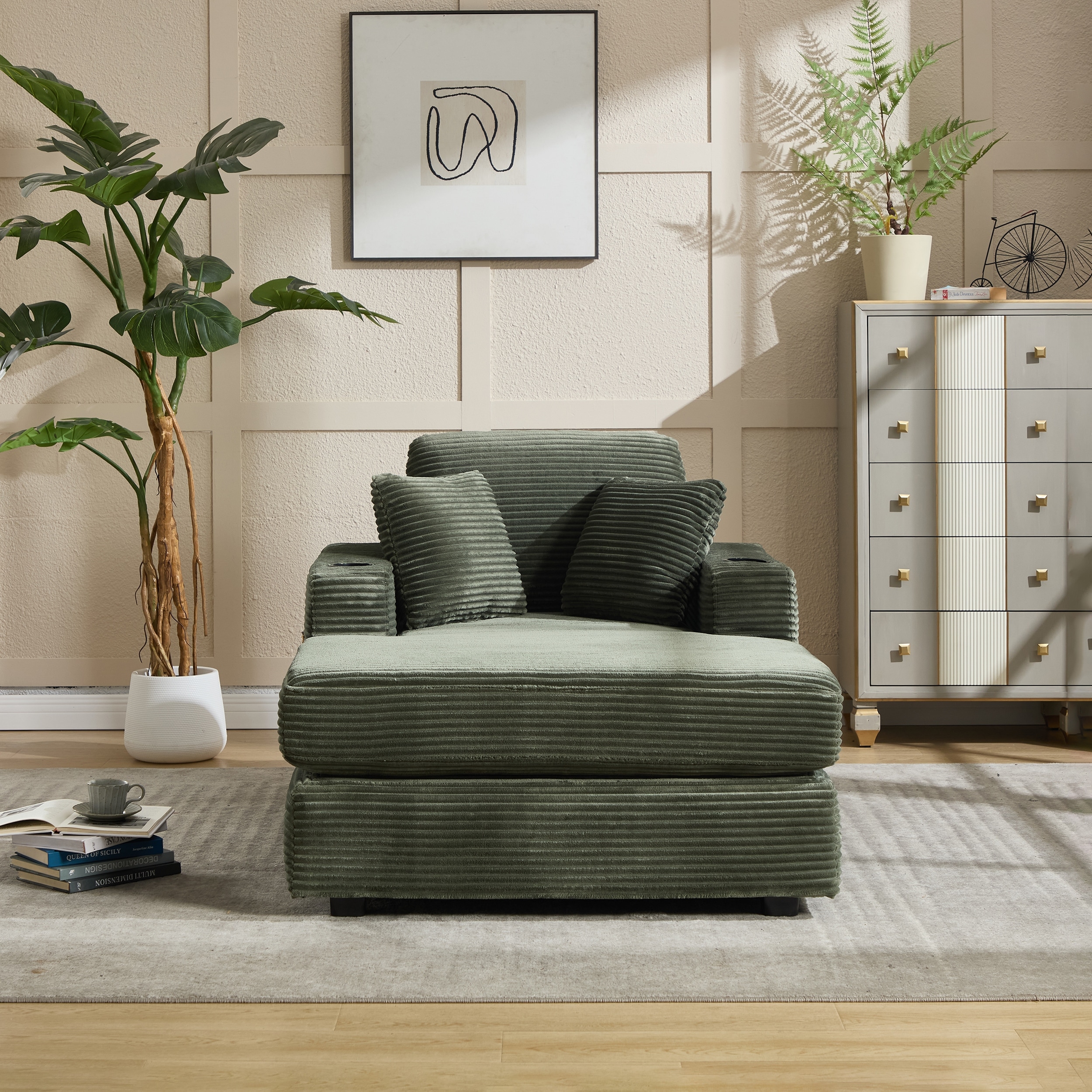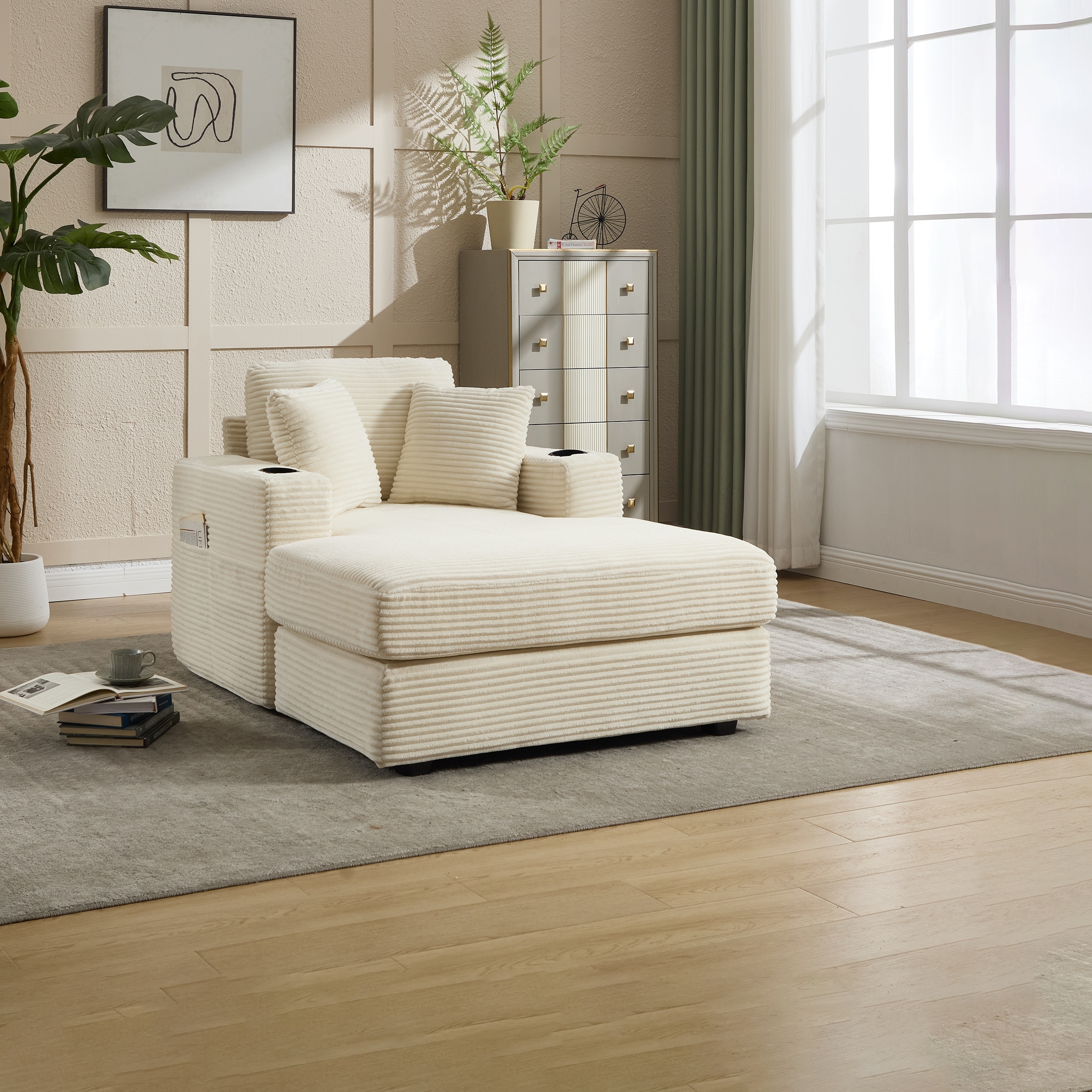 Corduroy Upholstered Chaise Lounge Sofa,Magazine bag,Detachable Cushions Deep Seat for Living Room Office
