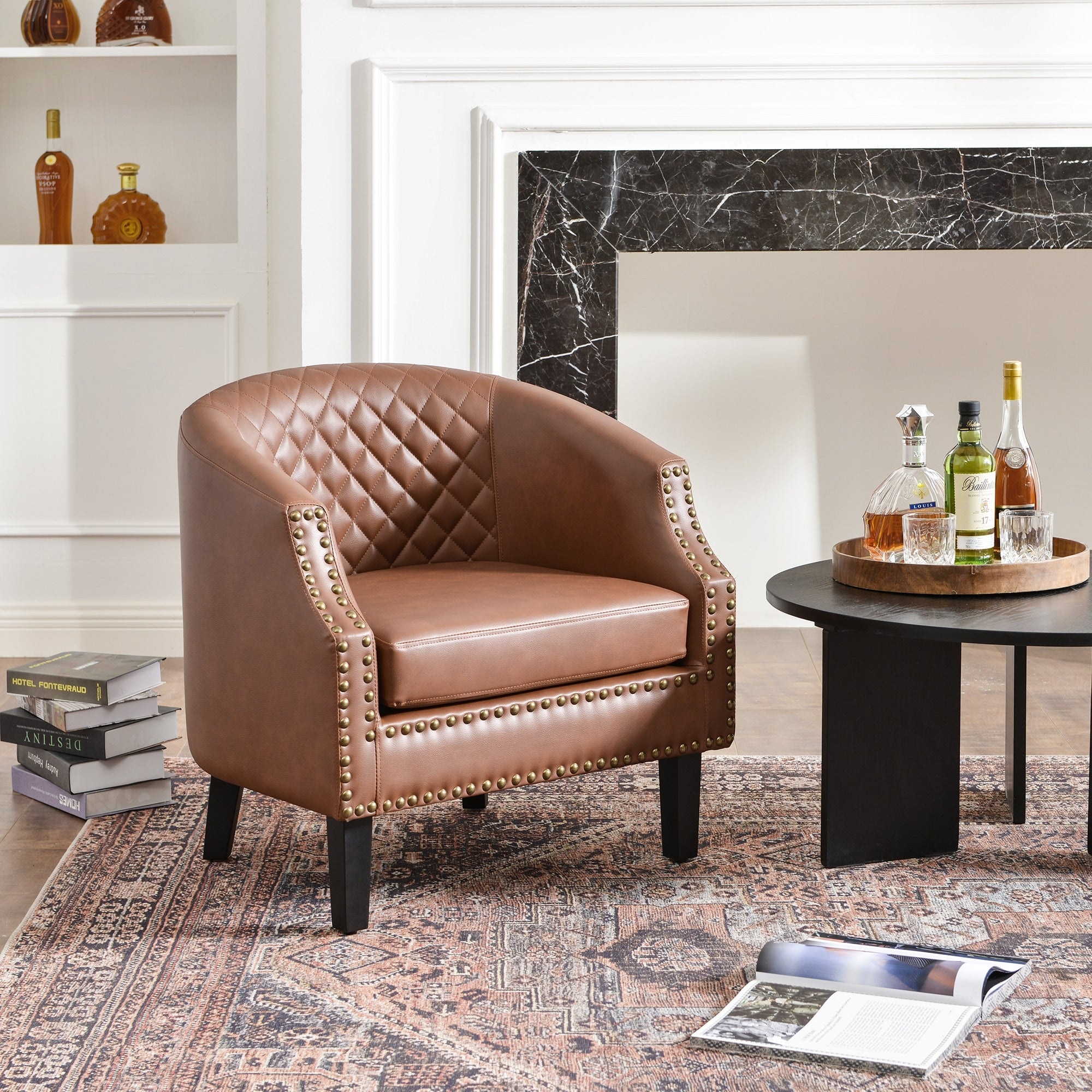 KINWELL 29 " W Tufted Faux Leather Barrel Chair PU Bar Club Chair