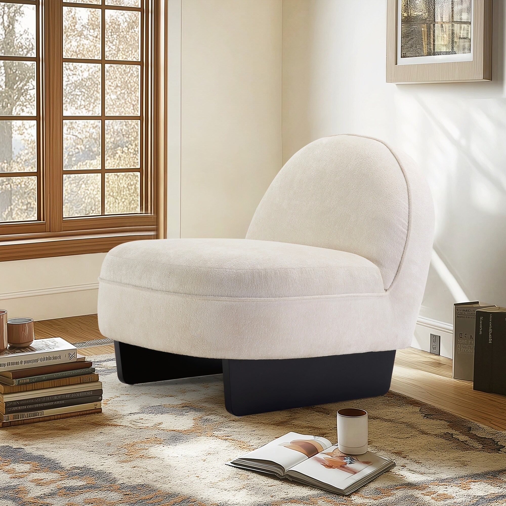 Dune Boucle Upholstered Armless Accent Chair in Parchment