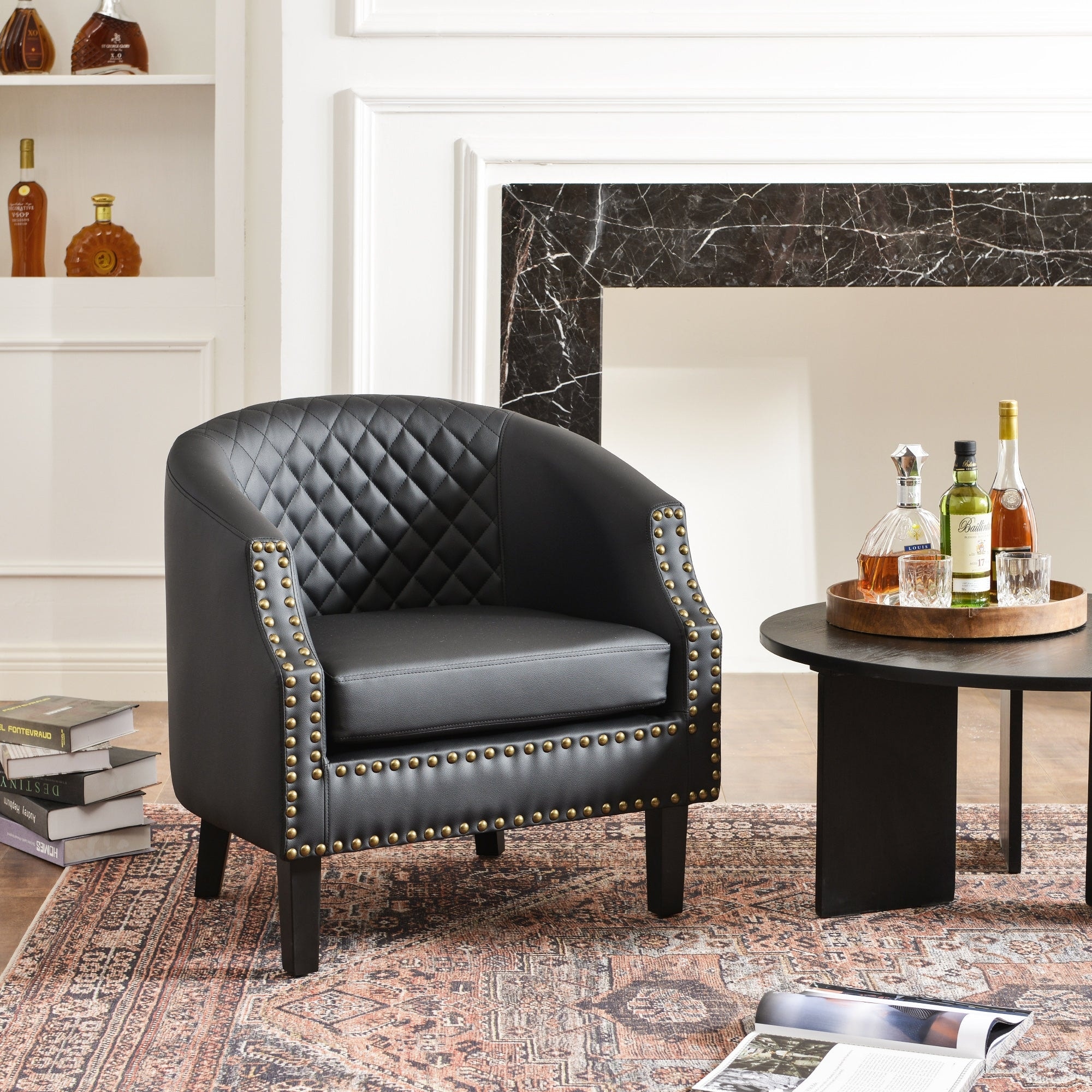 KINWELL 29 " W Tufted Faux Leather Barrel Chair PU Bar Club Chair