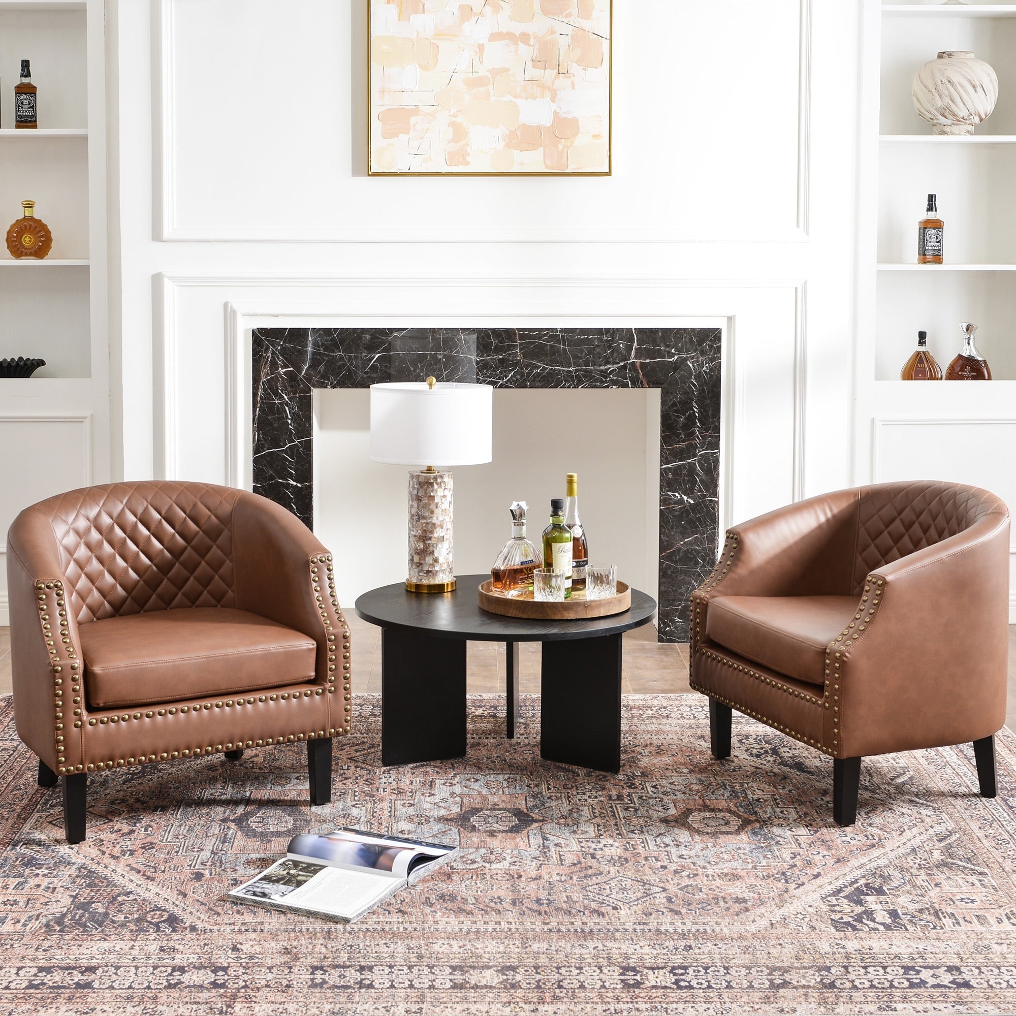 KINWELL 29 " W Tufted Faux Leather Barrel Chair PU Bar Club Chair