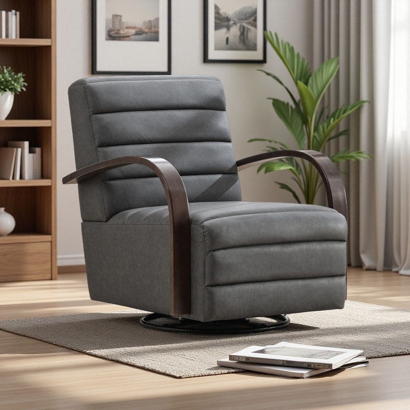 PU Modern 360° Swivel Accent Chair with Wood Armrests & Tufted Back