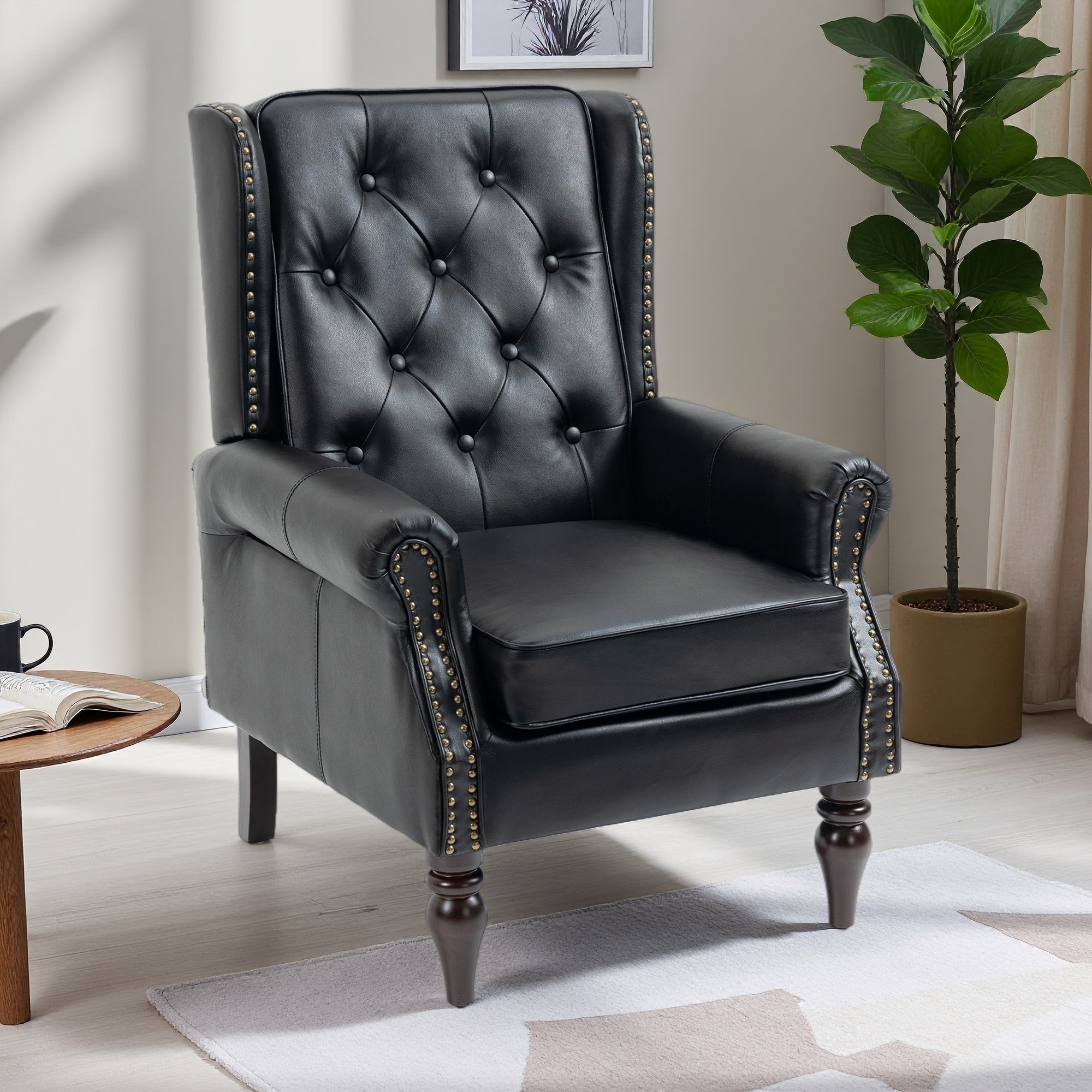 Faux Leather Accent Chair with Wide Backrest, Foam Cushion & Sturdy Wooden Legs for Living Room
