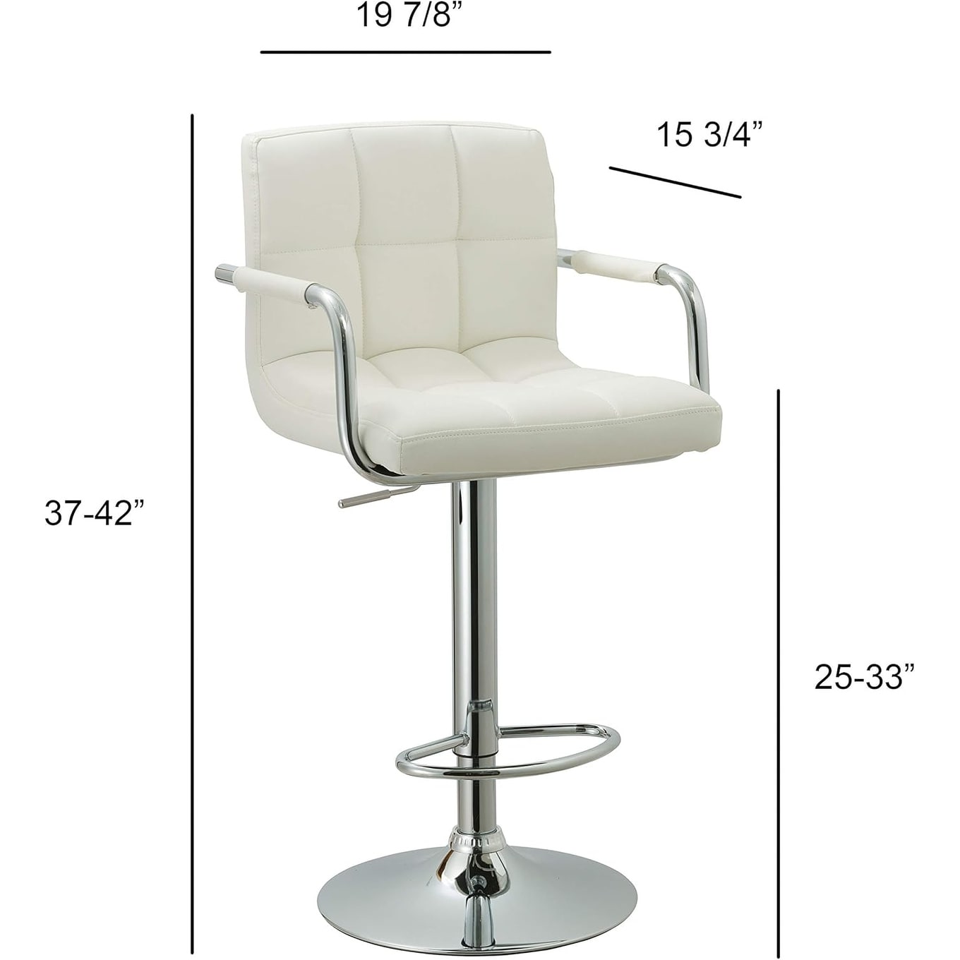 Contemporary Adjustable Swivel Arm Bar Stool with Cushion,white
