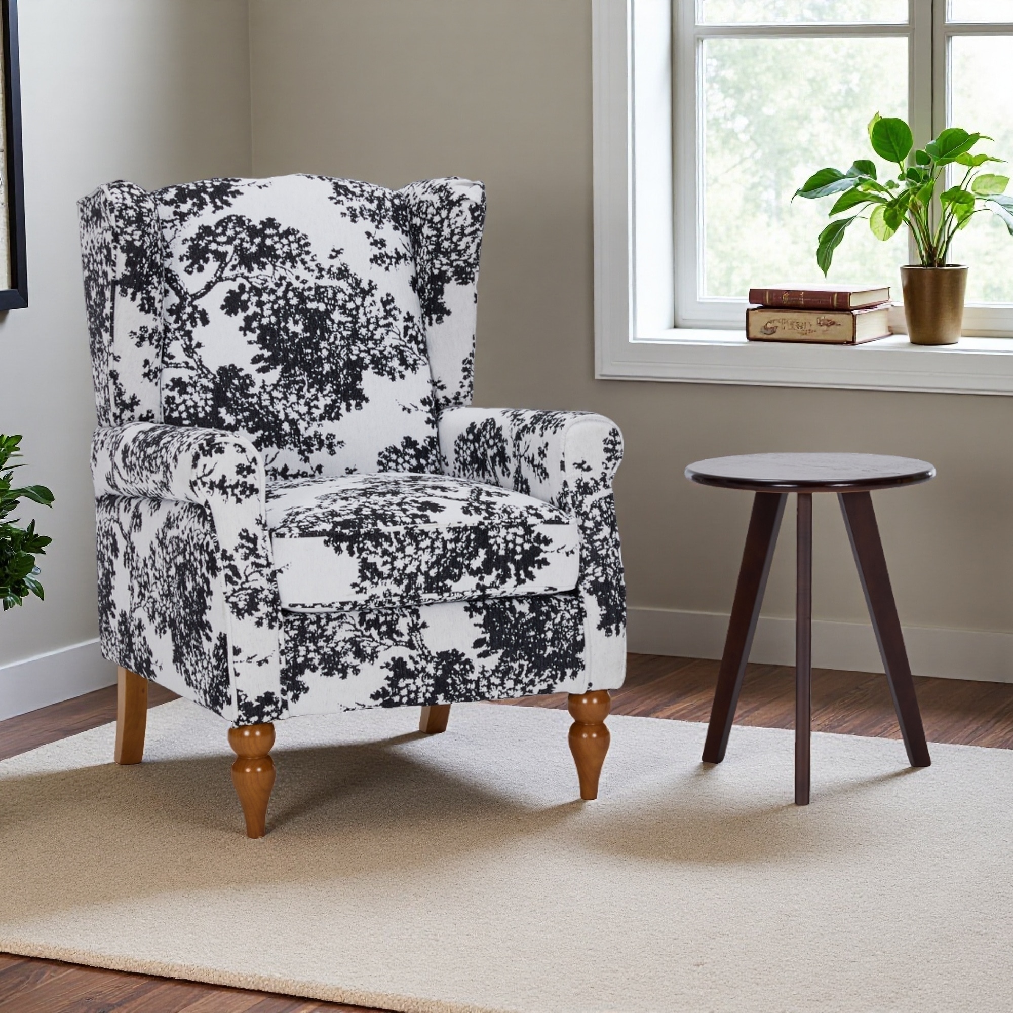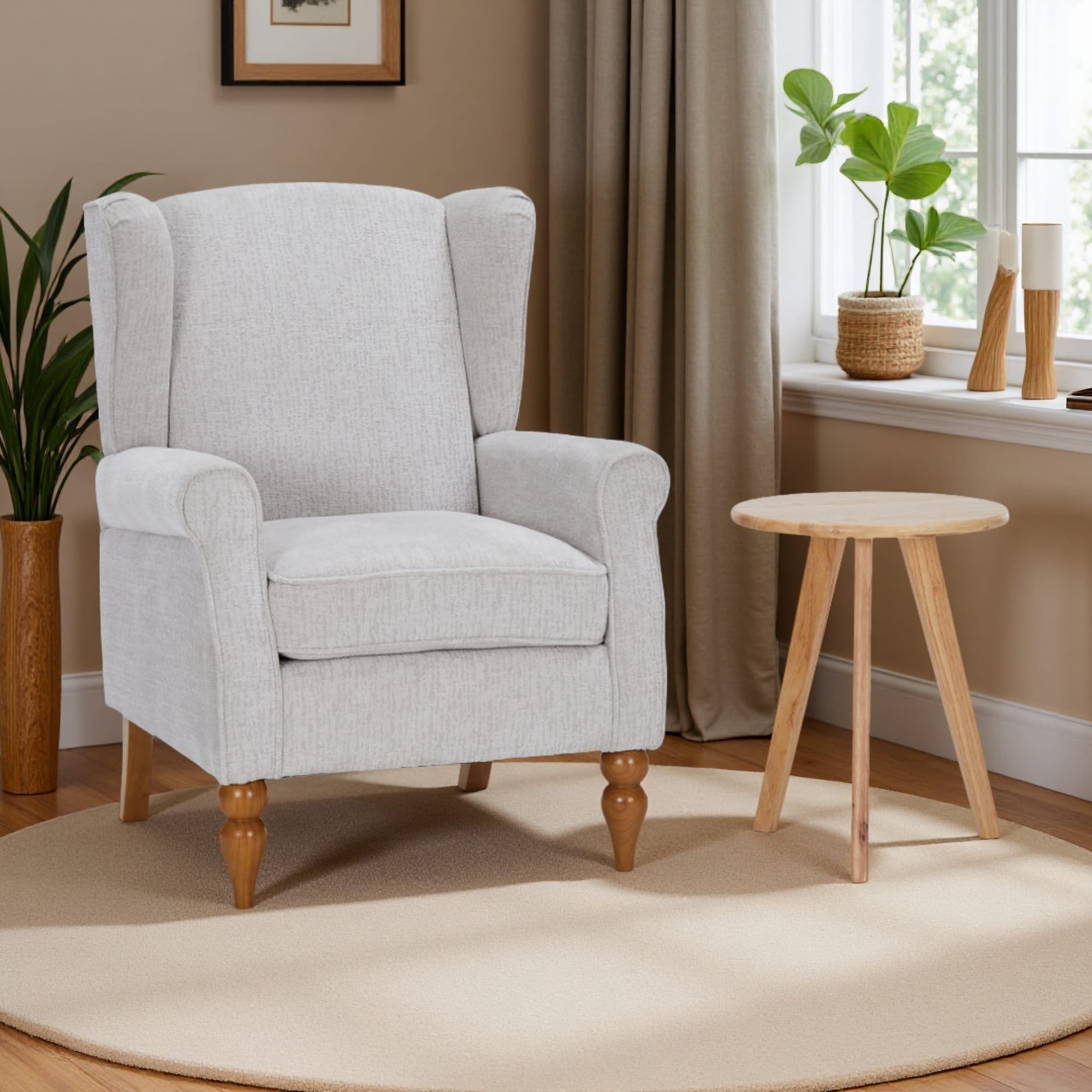 Polyester Fabric Wingback Armchair with High-Resilience Foam and Solid Wood Frame