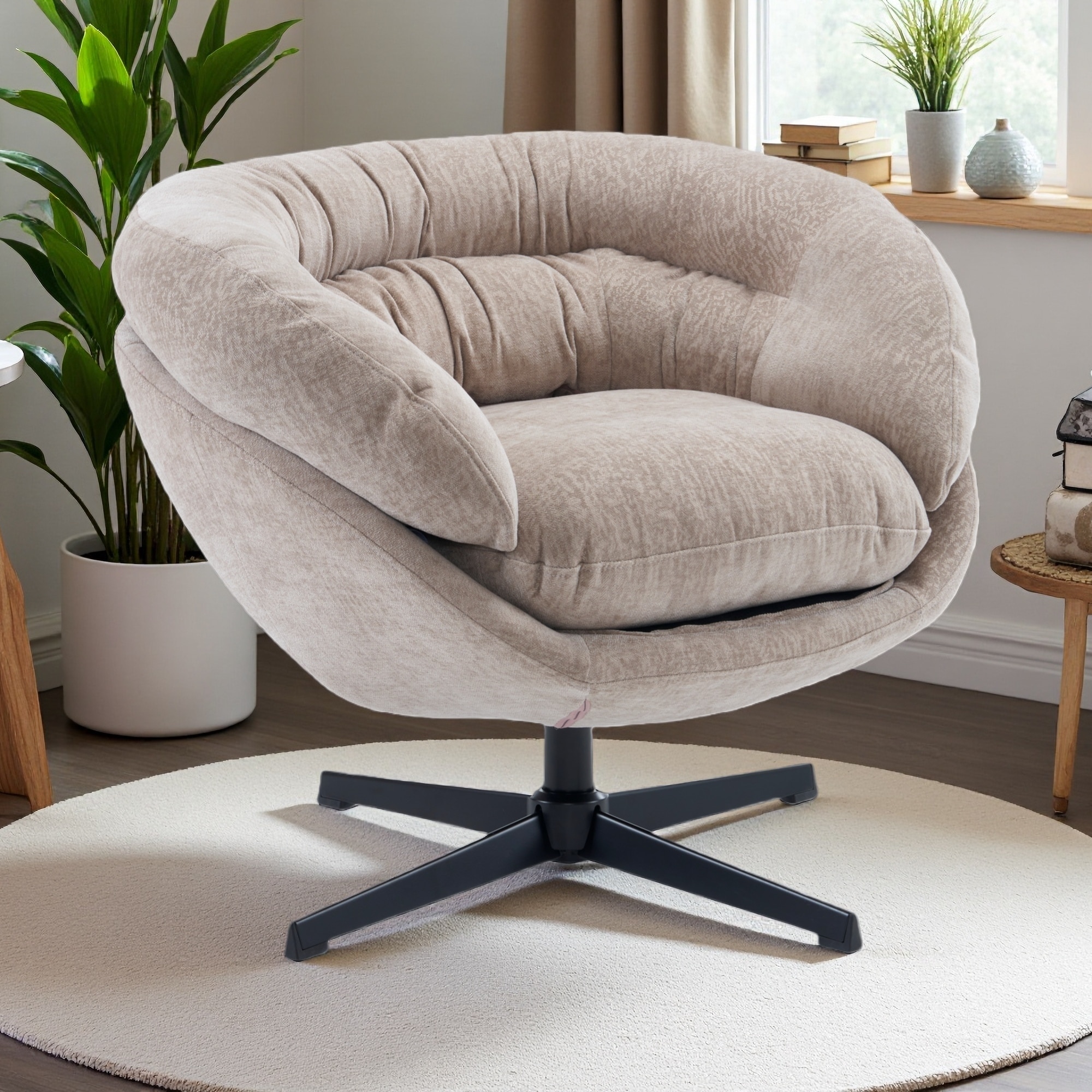 32.28in Wide Modern Chenille Cushioned Swivel Chair with Metal Base for Living Room and Office