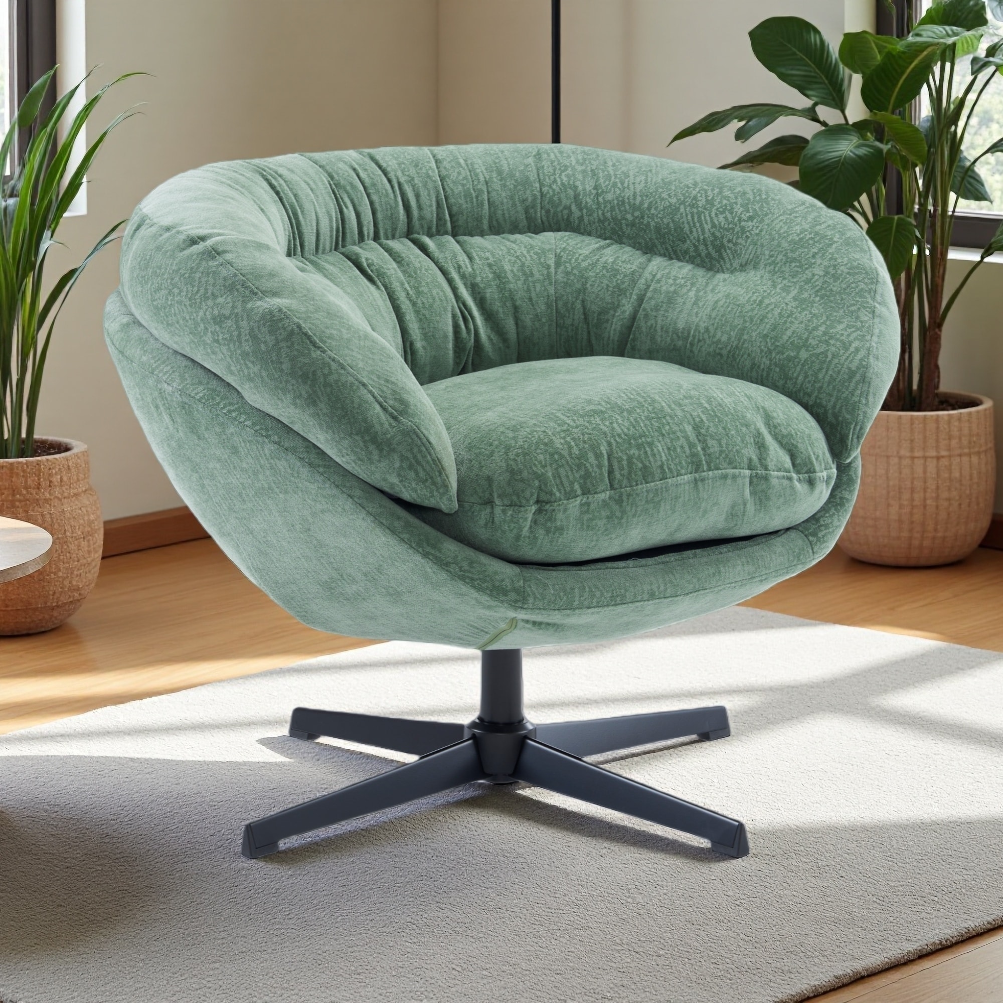 SEYNAR Modern Glam Upholstered 360 Degree Swivel Accent Armchair