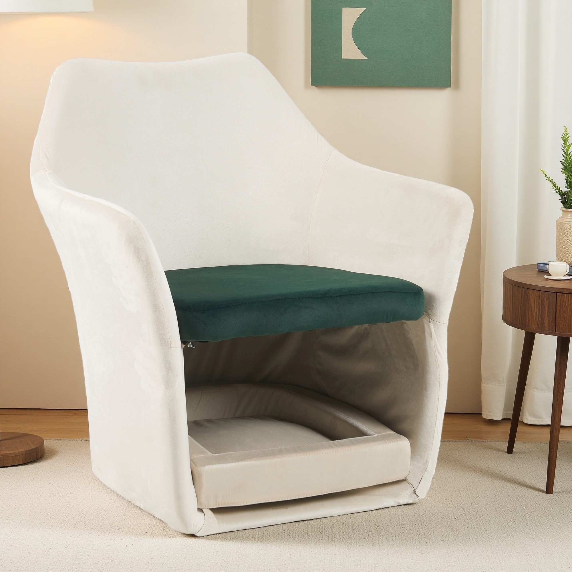 Velvet Fabric Pet-Friendly Accent Chair with Removable Pet Base and High-Density Foam