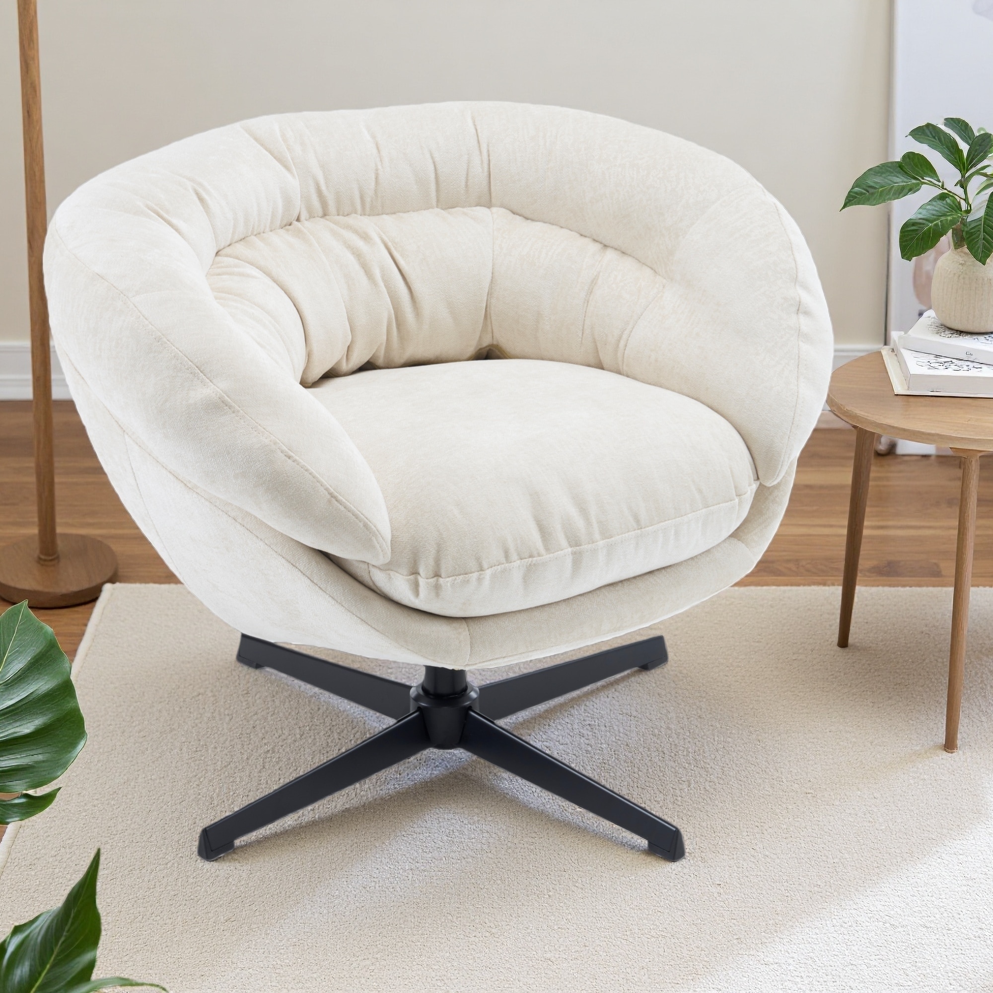 Modern Luxurious Swivel Accent Chair Beige Soft Corduroy Plush Seating Solid Wood Stylish Home Furniture 1pc