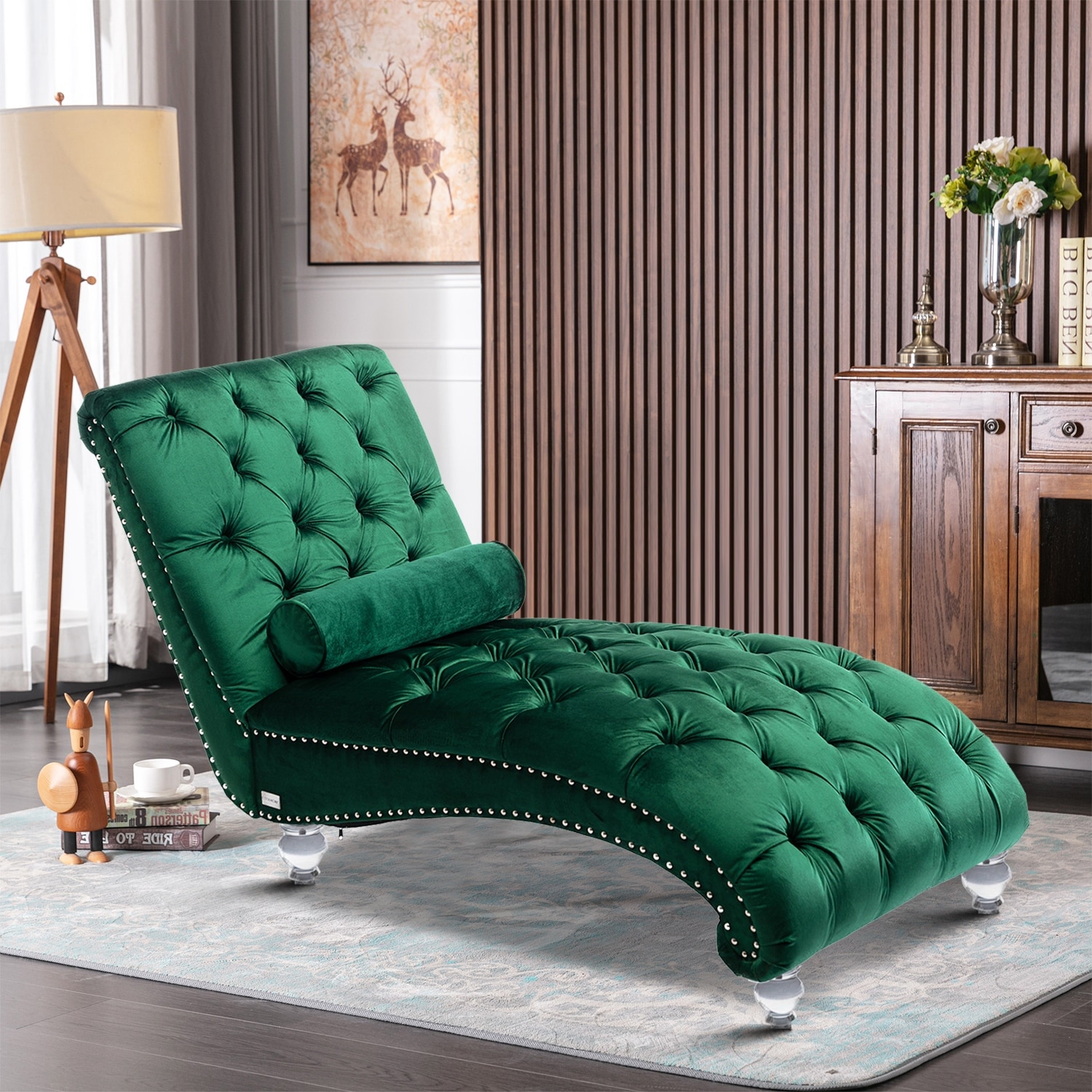 Elegant Stylish Velvet Upholstered Leisure Lounge Chair with Transparent Acrylic Legs