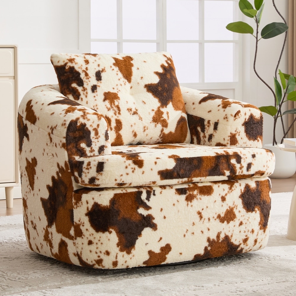 Swivel Round Chair with Dual-layer Cushion Design for Living Room