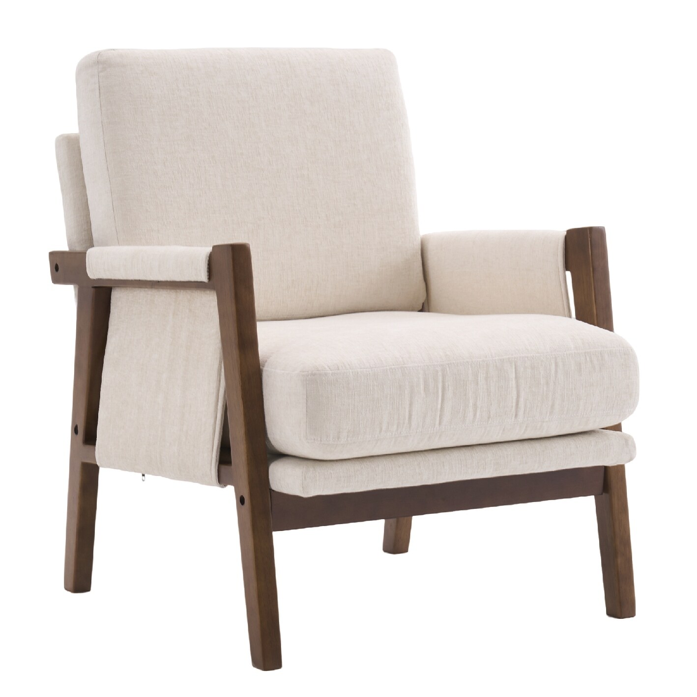 Mid Century Modern Accent Chair with Wood Frame, Upholstered Living Room Chairs with Waist Cushion, Reading Armchair