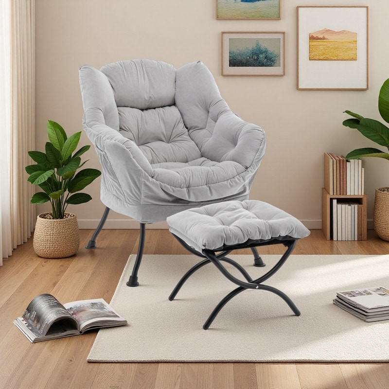 Velvet Lounge Accent Chairs with Ottoman & High-Density Cotton Cushion