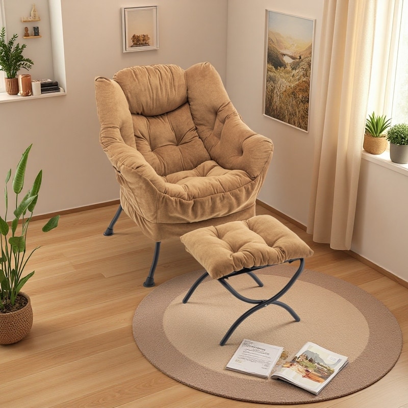 Velvet Lounge Accent Chairs with Ottoman & High-Density Cotton Cushion