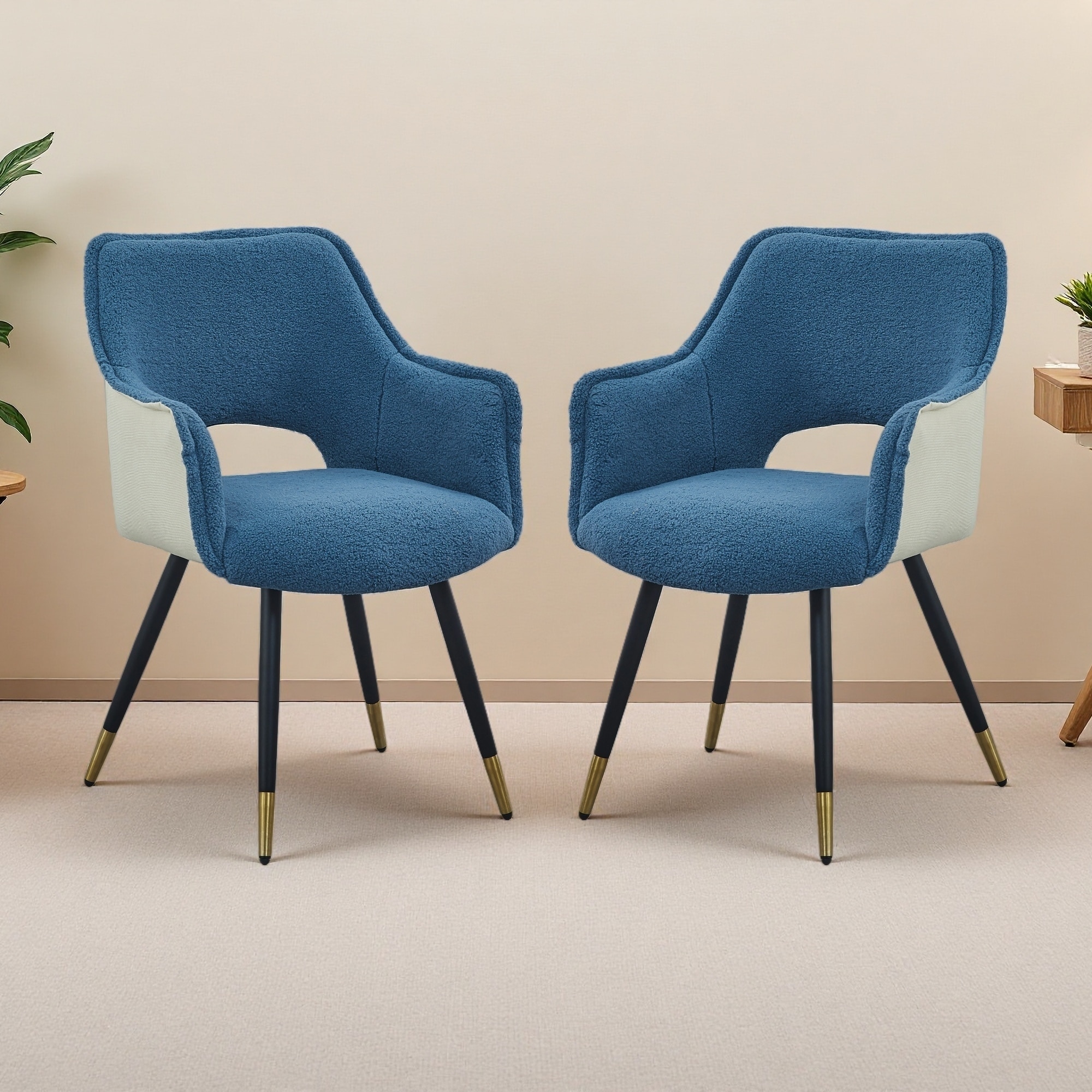 Set of 2 Fabric Accent Chairs with Iron Legs, Two-Tone Velvet Upholstery for Living Room, Kitchen or Vanity