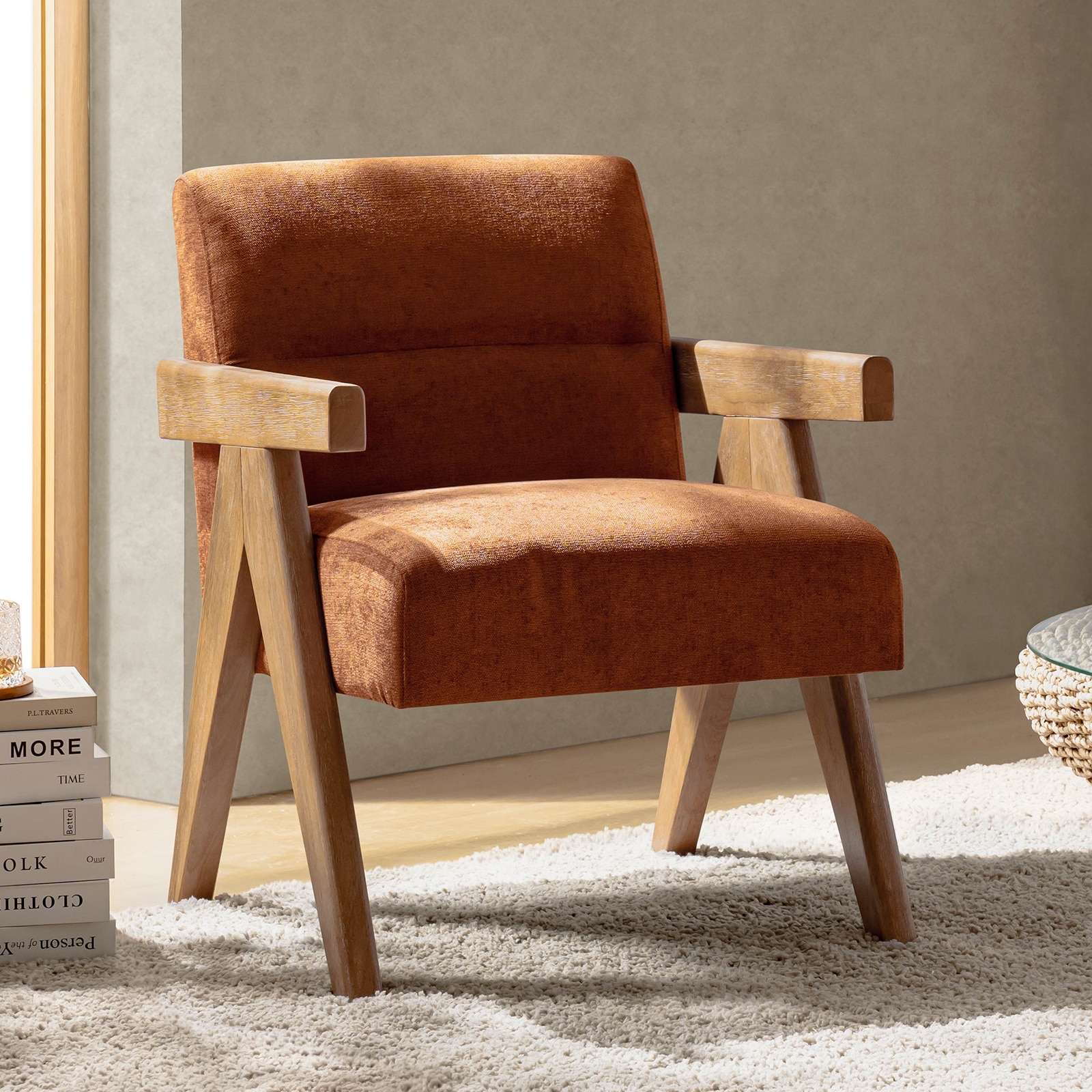 Tanis Mid-Century Modern Accent Chair With Curved Wood Arms and Rubberwood Legs By HULALA HOME