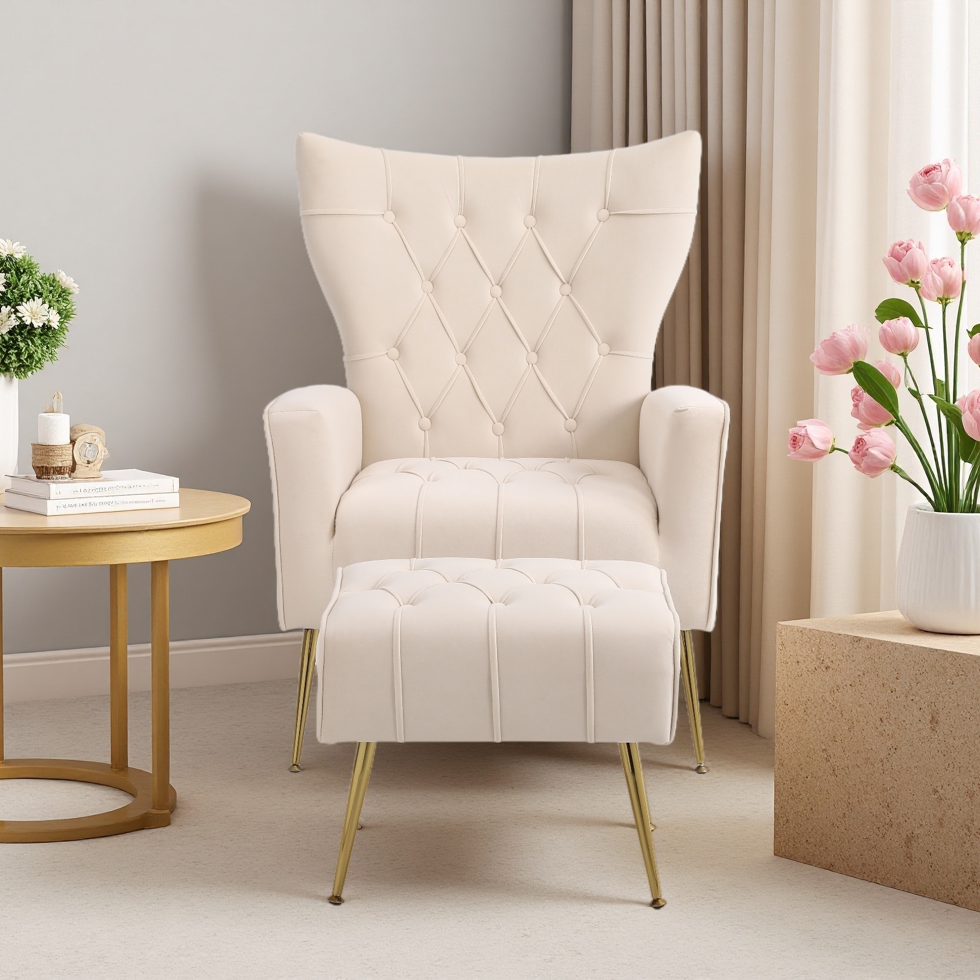 Velvet Armchair with Ottoman, Comfy Cushions & Easy Assembly for Living Room or Bedroom