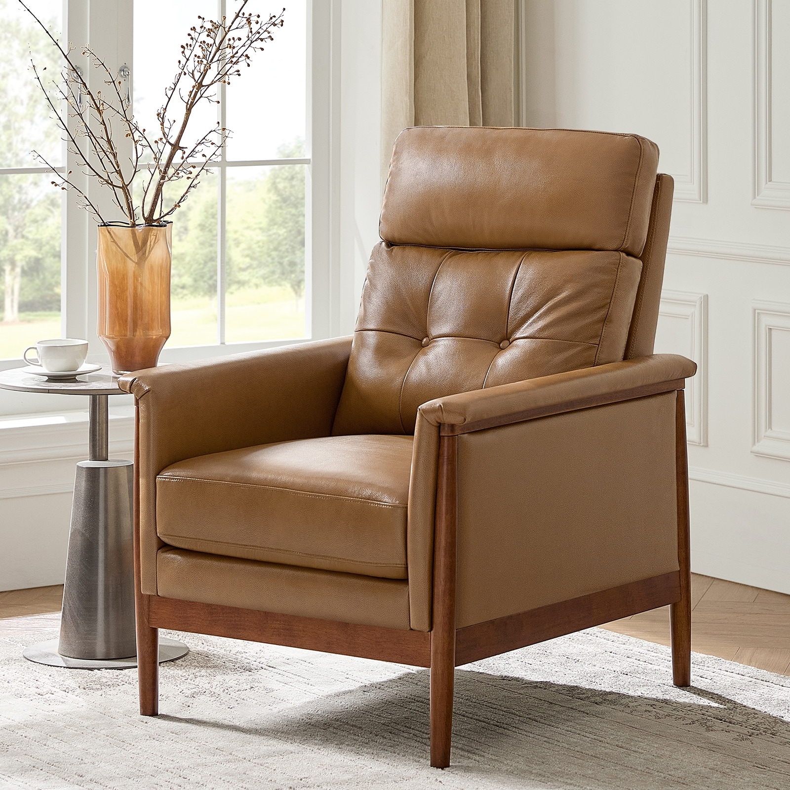 Enrico Mid-Century Modern Genuine Leather Armchair By HULALA HOME