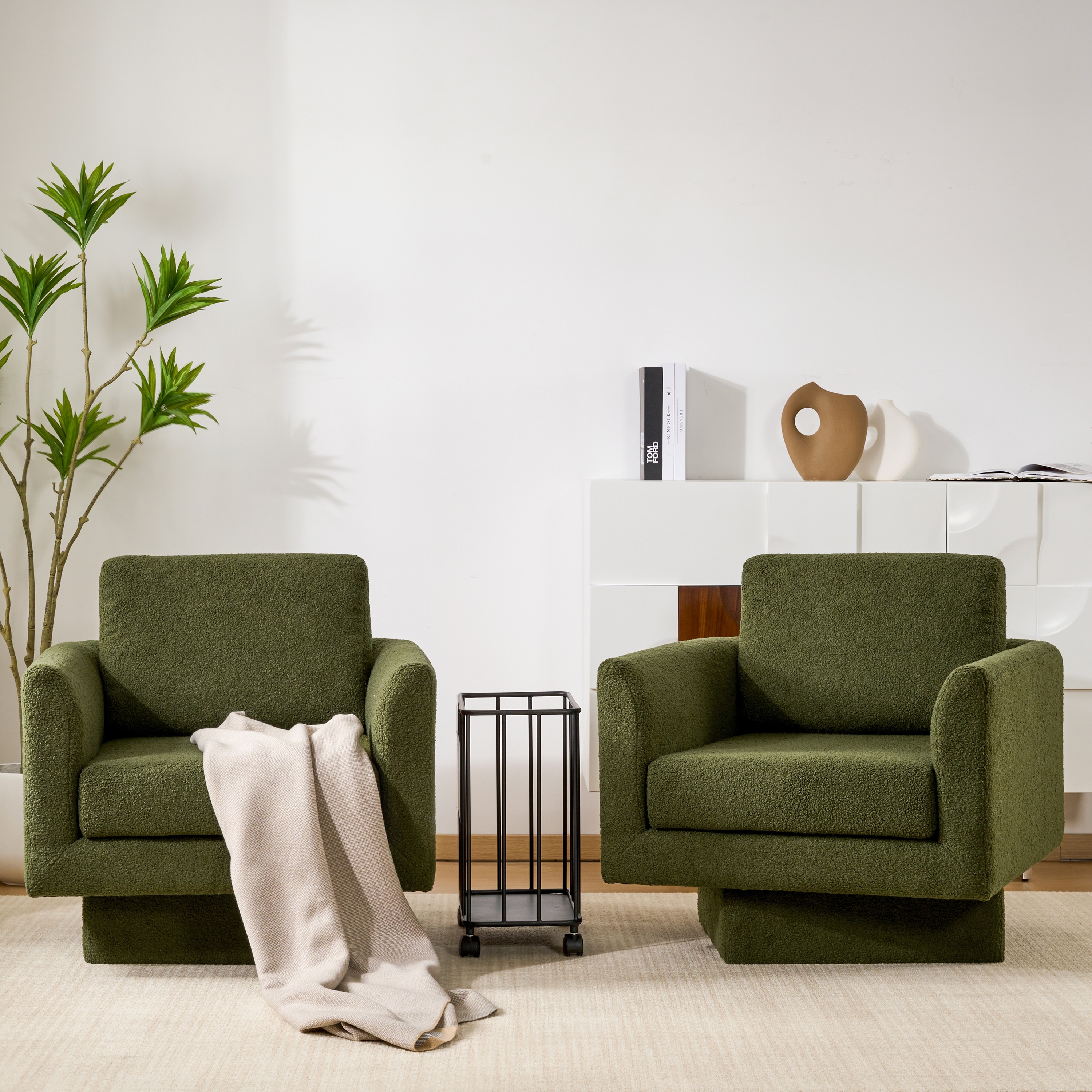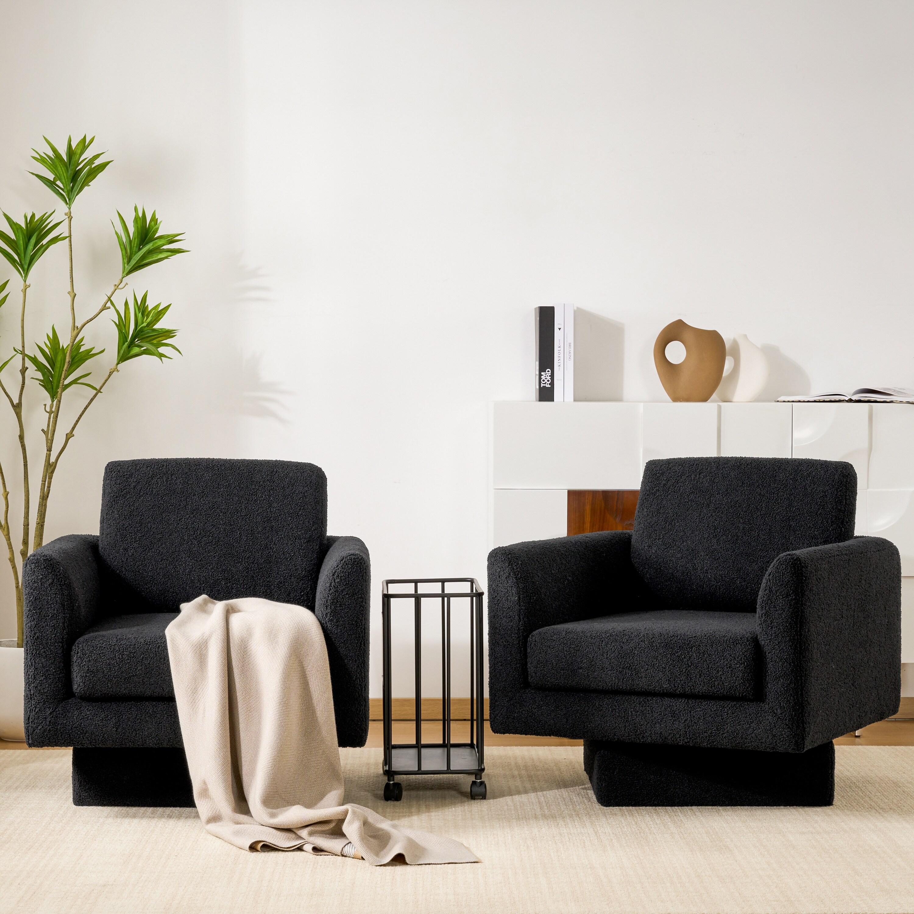 KINWELL 33" W Sherpa Boucle Upholstered Accent Swivel Chair (Set of 2)