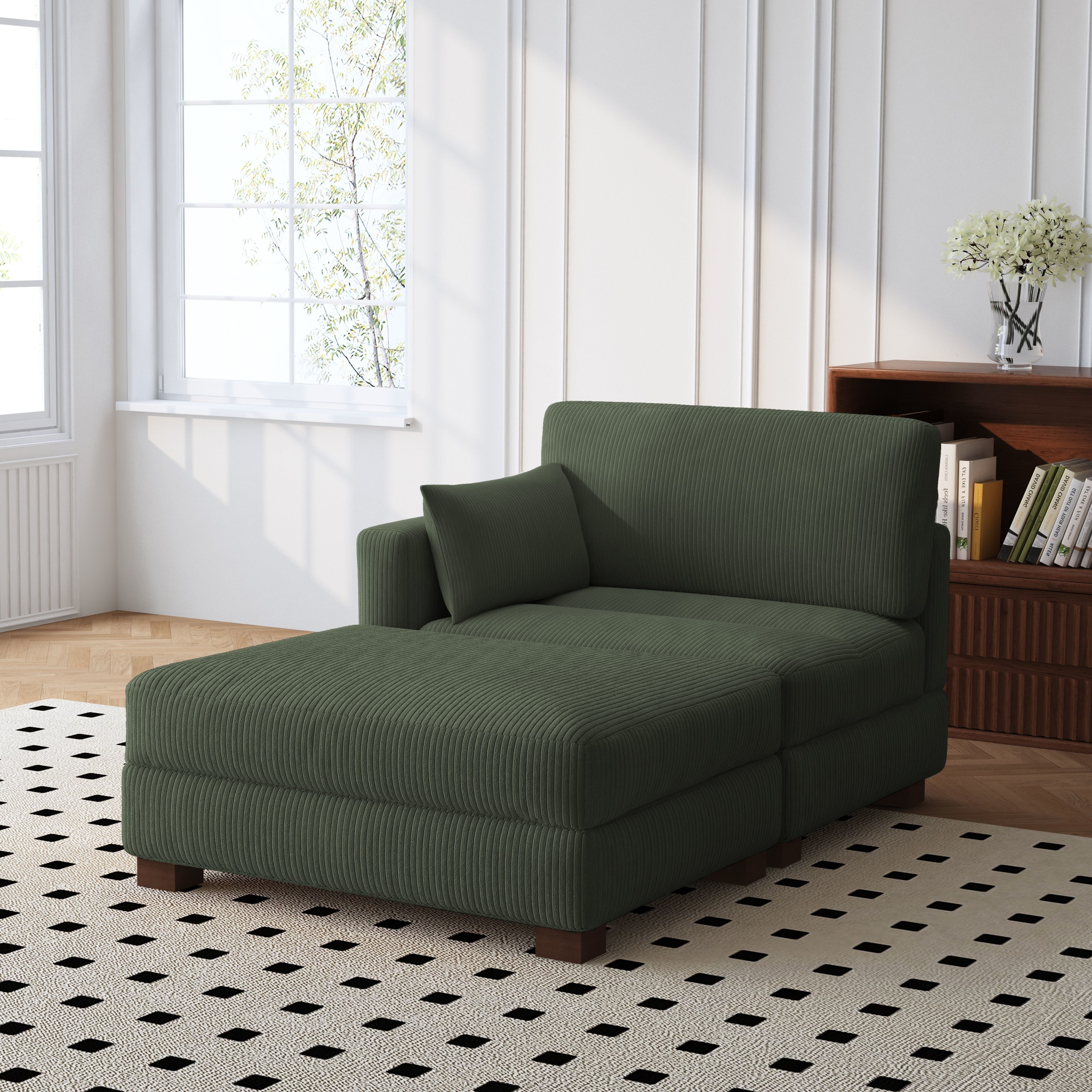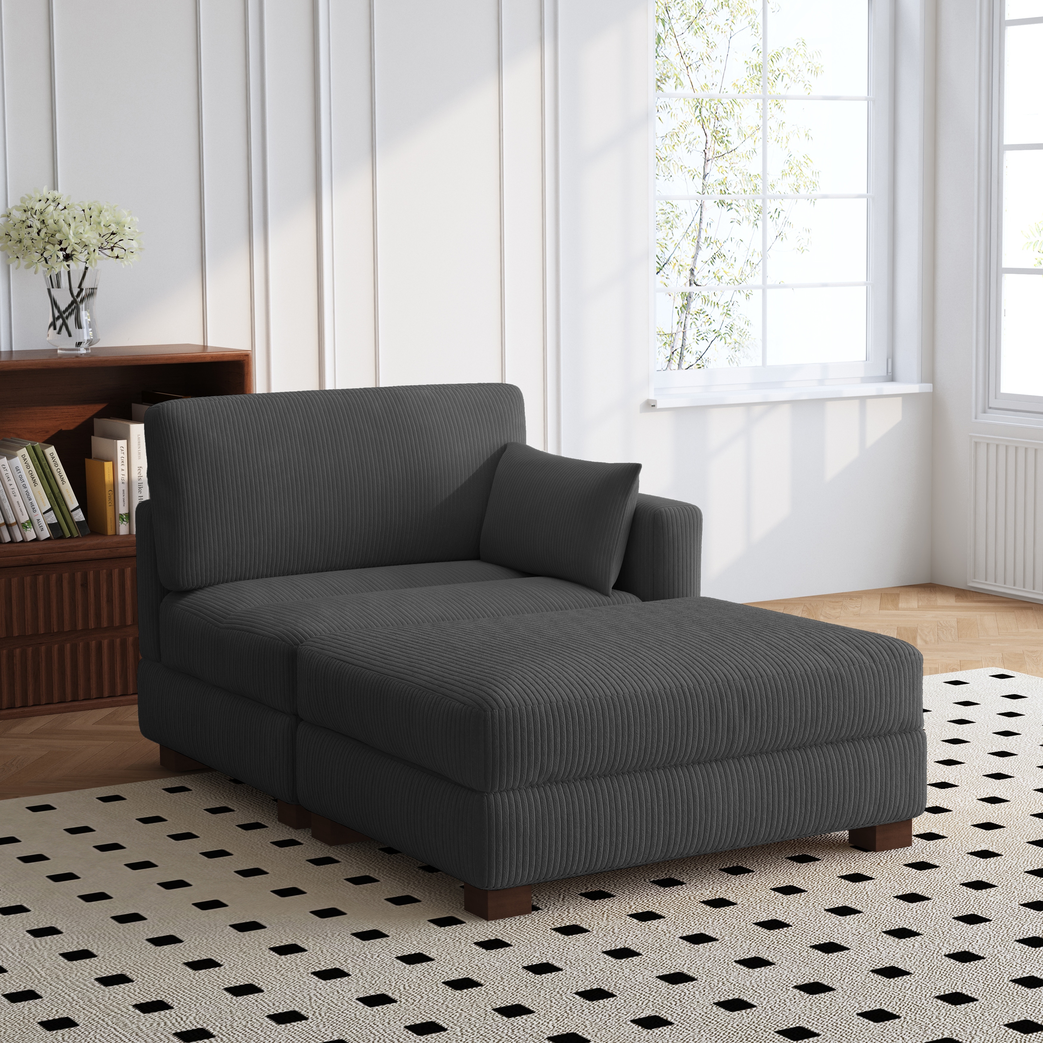 Modern 43'' Corduroy Comfy Sectional Chaise Lounge with Pillow