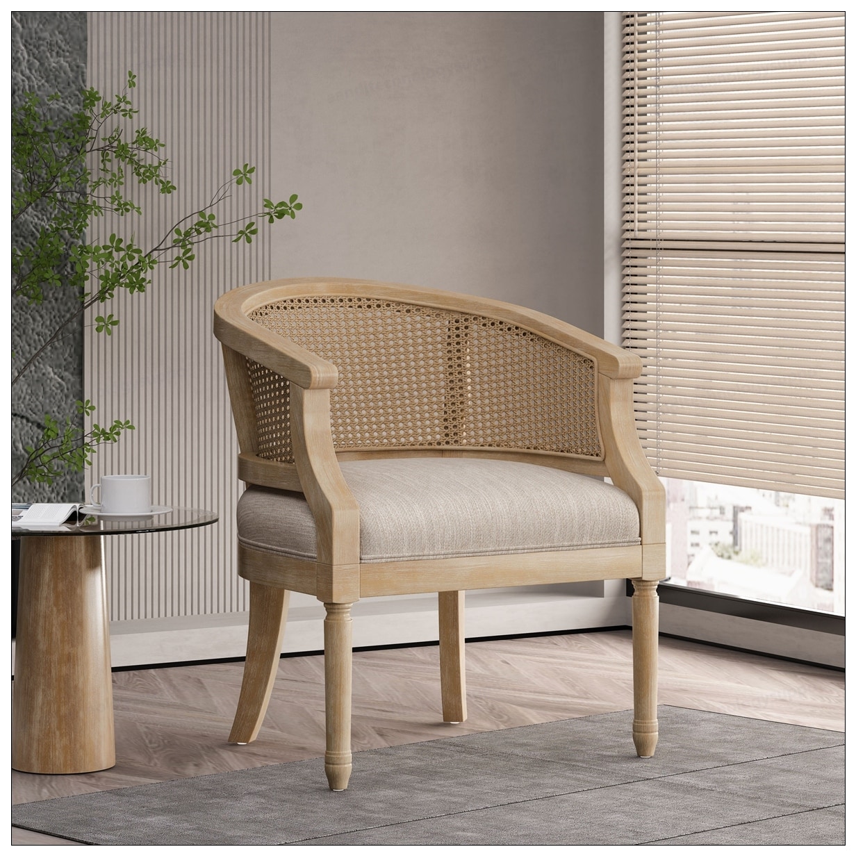 Upholstered Modern Barrel Accent Chair with Wood Legs