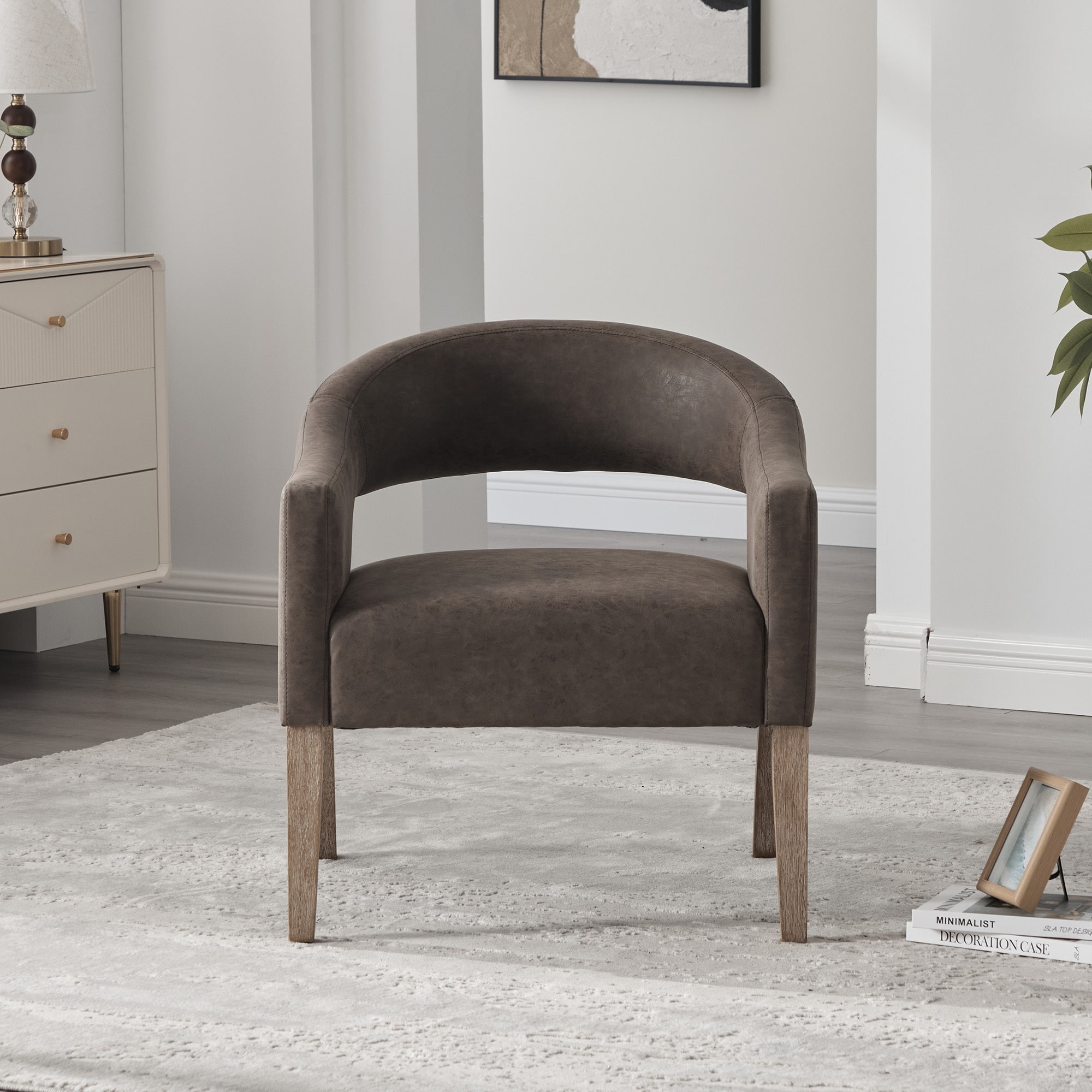 PU Upholstered Accent Barrel Chair, Living Room Lounge Reading Chair with Solid Wood Legs, Single Open Back Dining Armchair