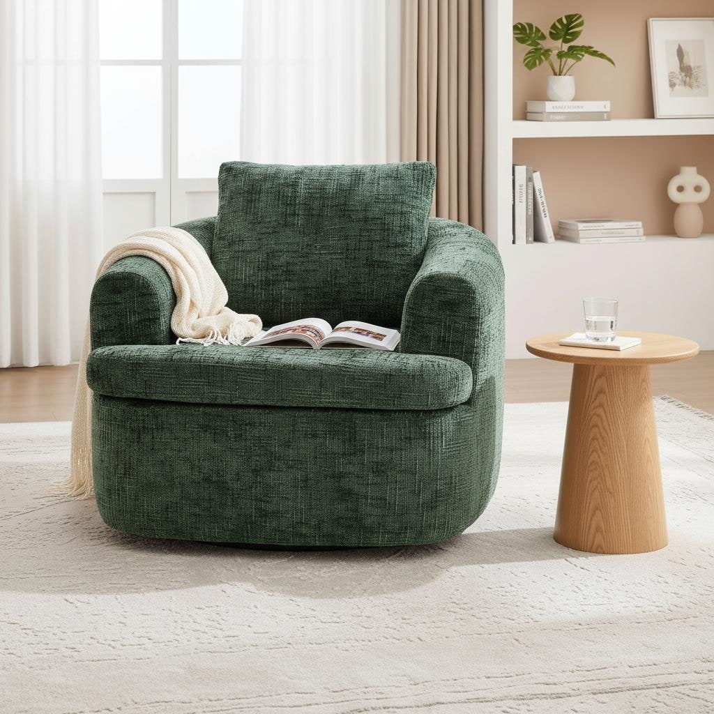 Plush 360° Swivel Barrel Accent Chair with Deep Cushioning by Harper&Bright Designs