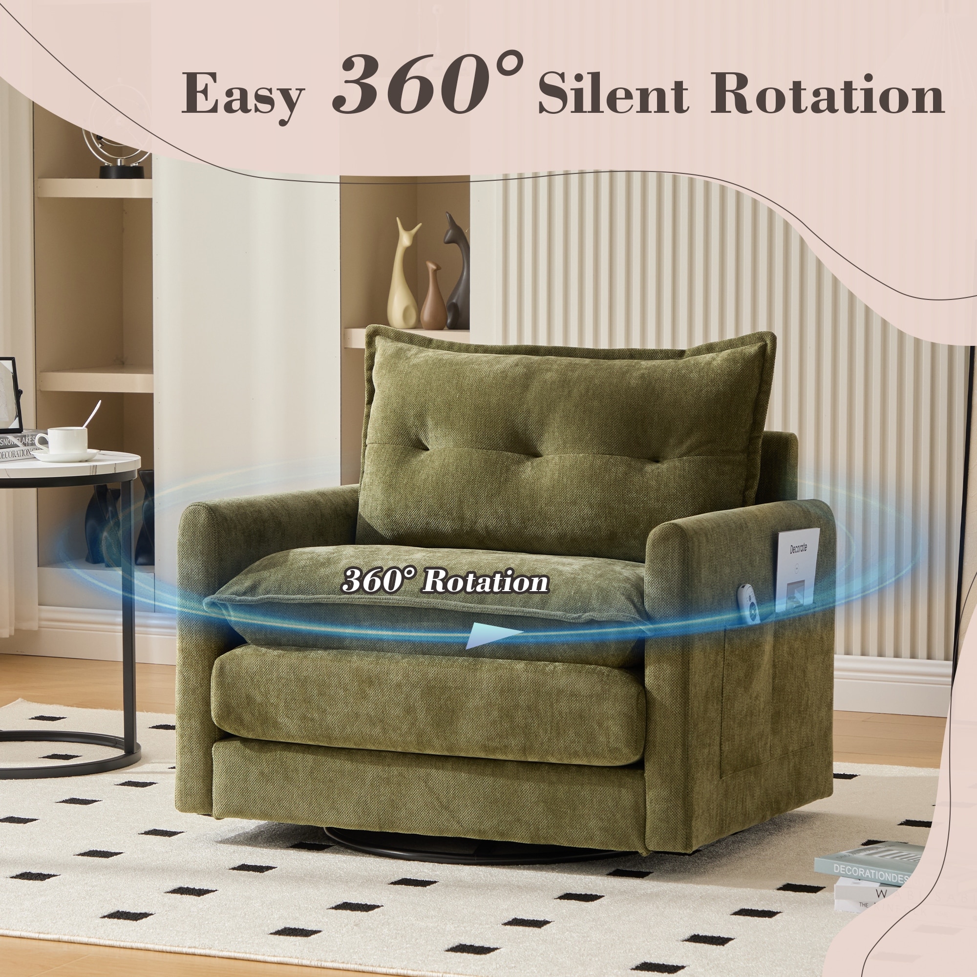 Swivel Barrel Chair - Mid Century Modern Chair, Thick Padded Arm Chair with Solid Metal Base