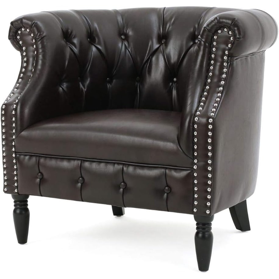 Modern Style Accent Chair Leather Upholstered Tufted Detail Walnut Finish Wood Furniture 1pc