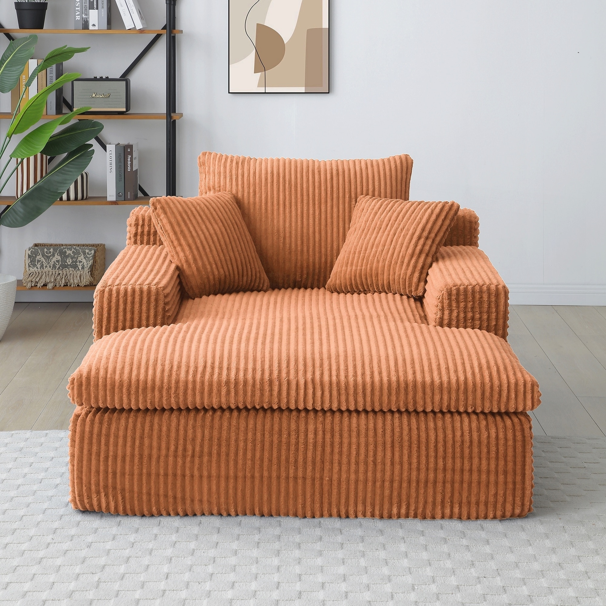 Corduroy Chaise Lounge Chair Set with Ottoman
