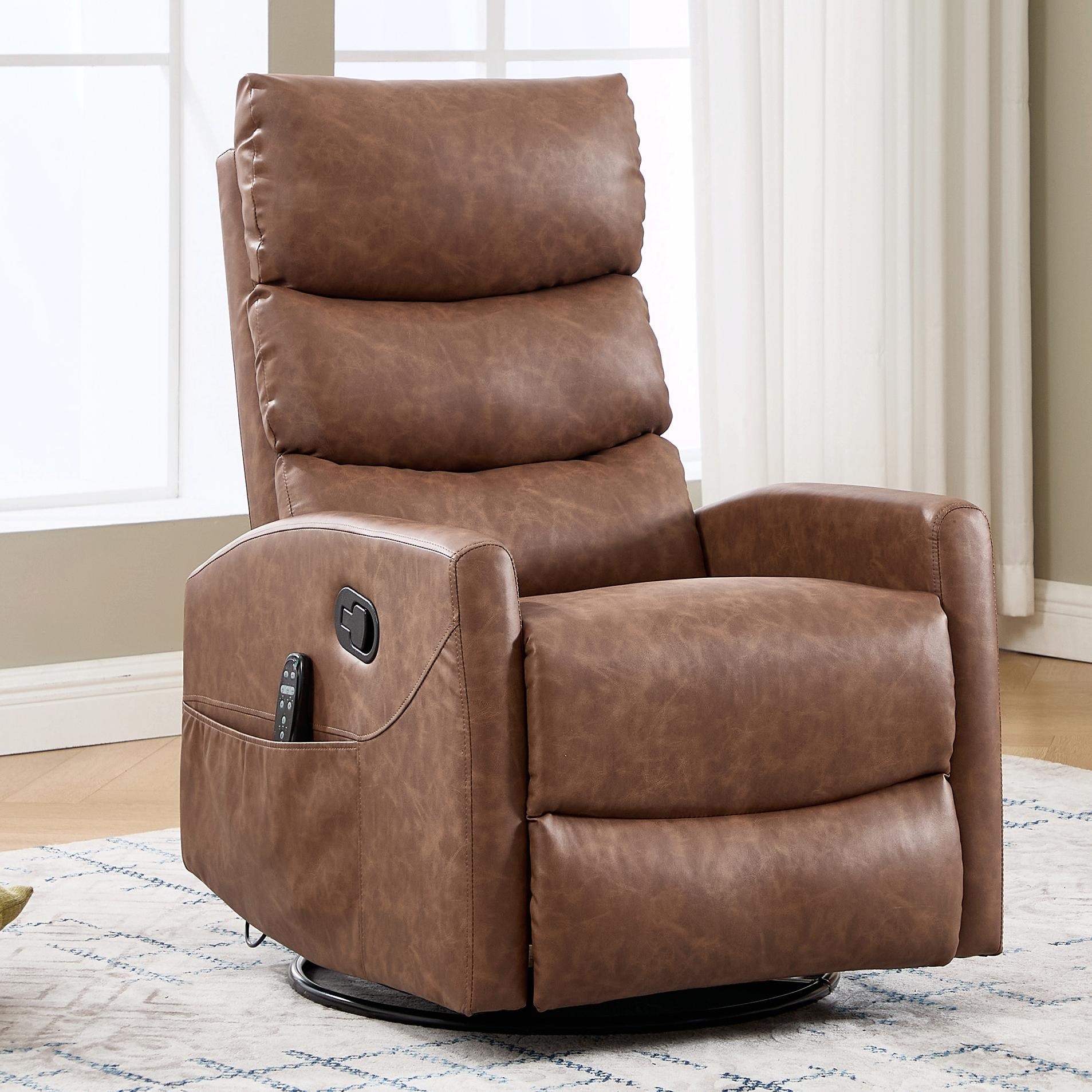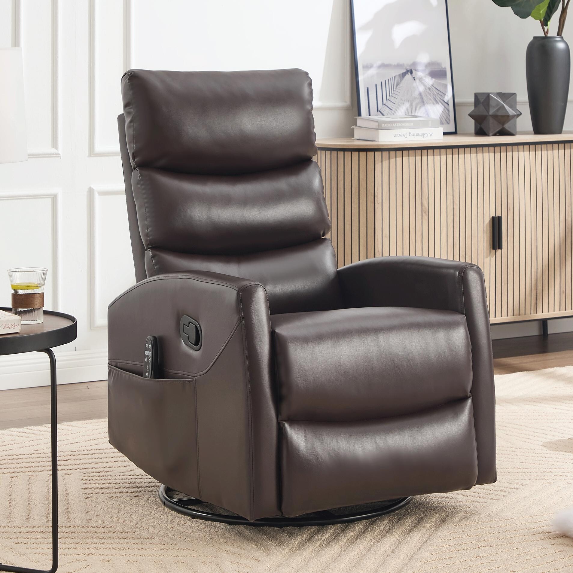 Global Home Swivel Glider Recliner with Manual Adjustable Headrest & Footrest In Oslo Pecan