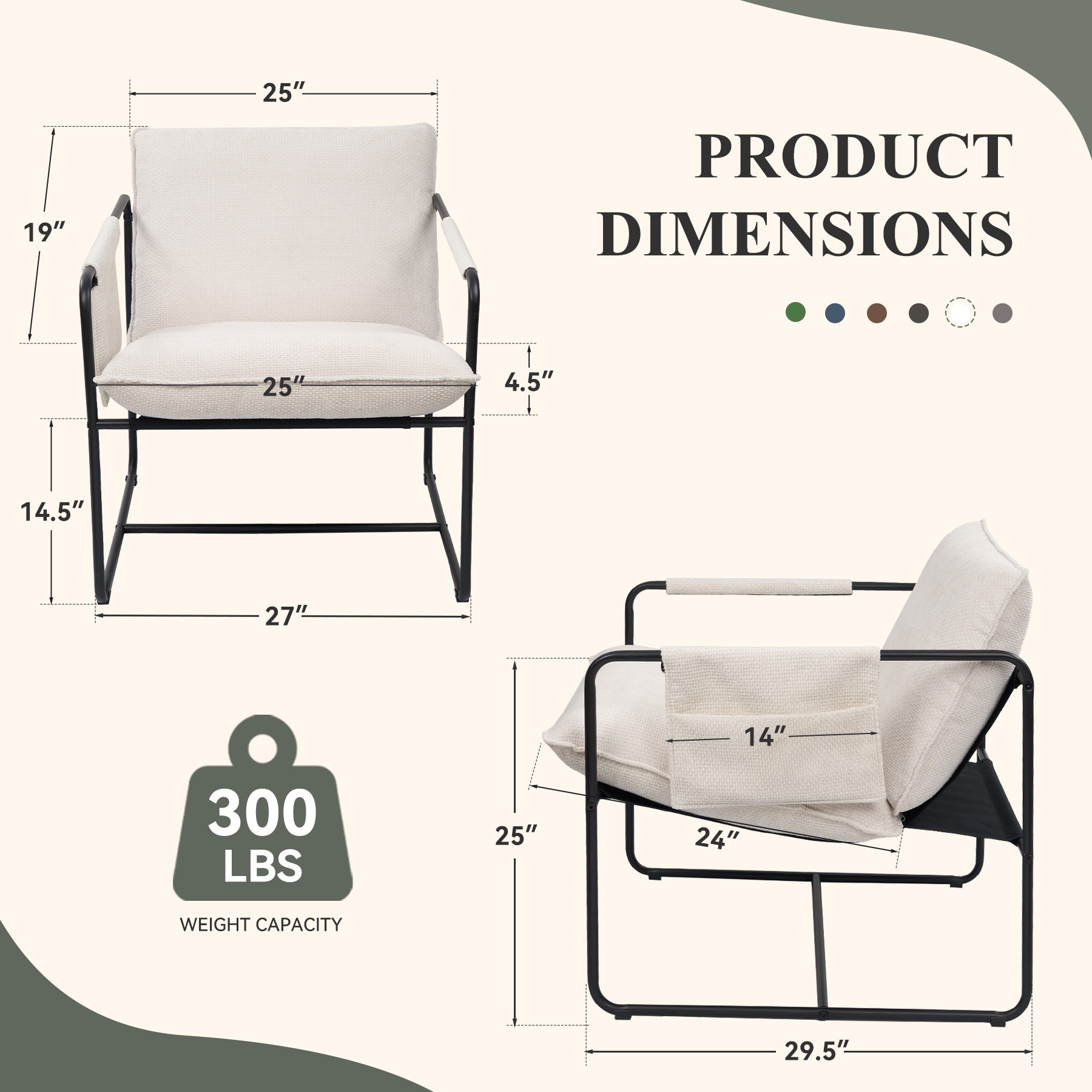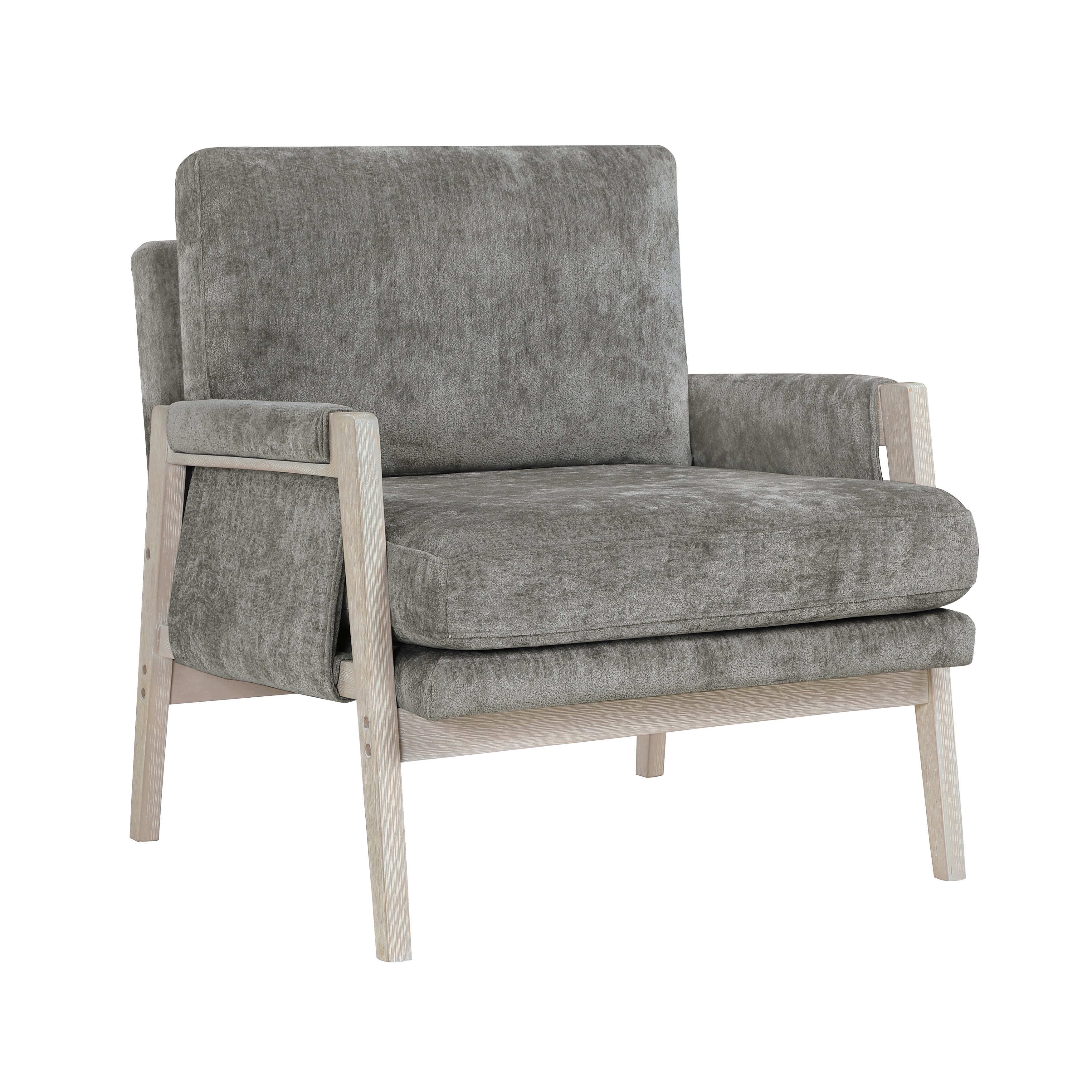 Modern Home Accent Chair Cushion Seat Back Cream Chenille Fabric Upholstery Solid Wood Furniture 1pc
