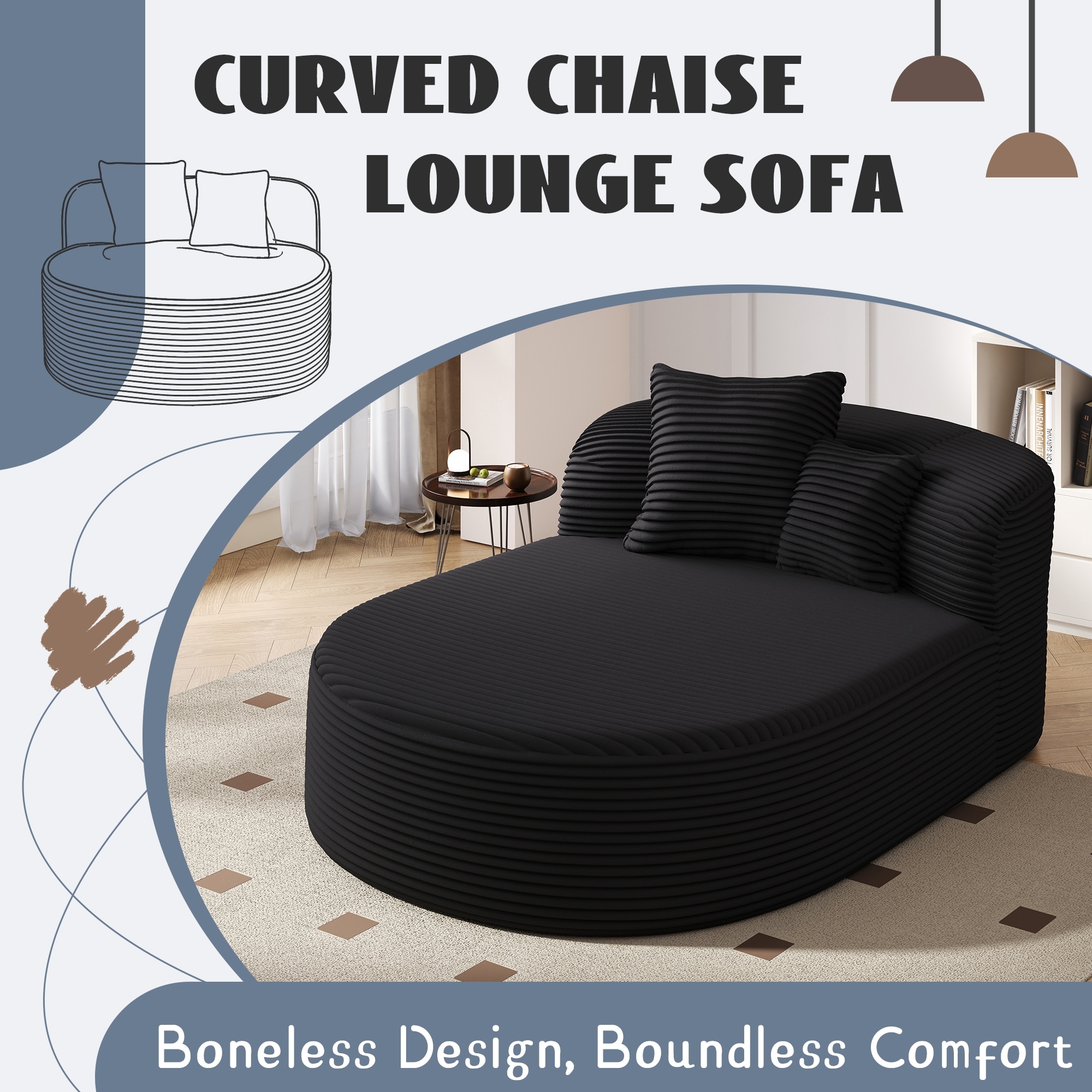 Curved Chaise Lounge Sofa with 2 Pillows, Corduroy Upholstered Sofa Bed Extra-deep Seat Single Sofa Recliners Boneless Couch