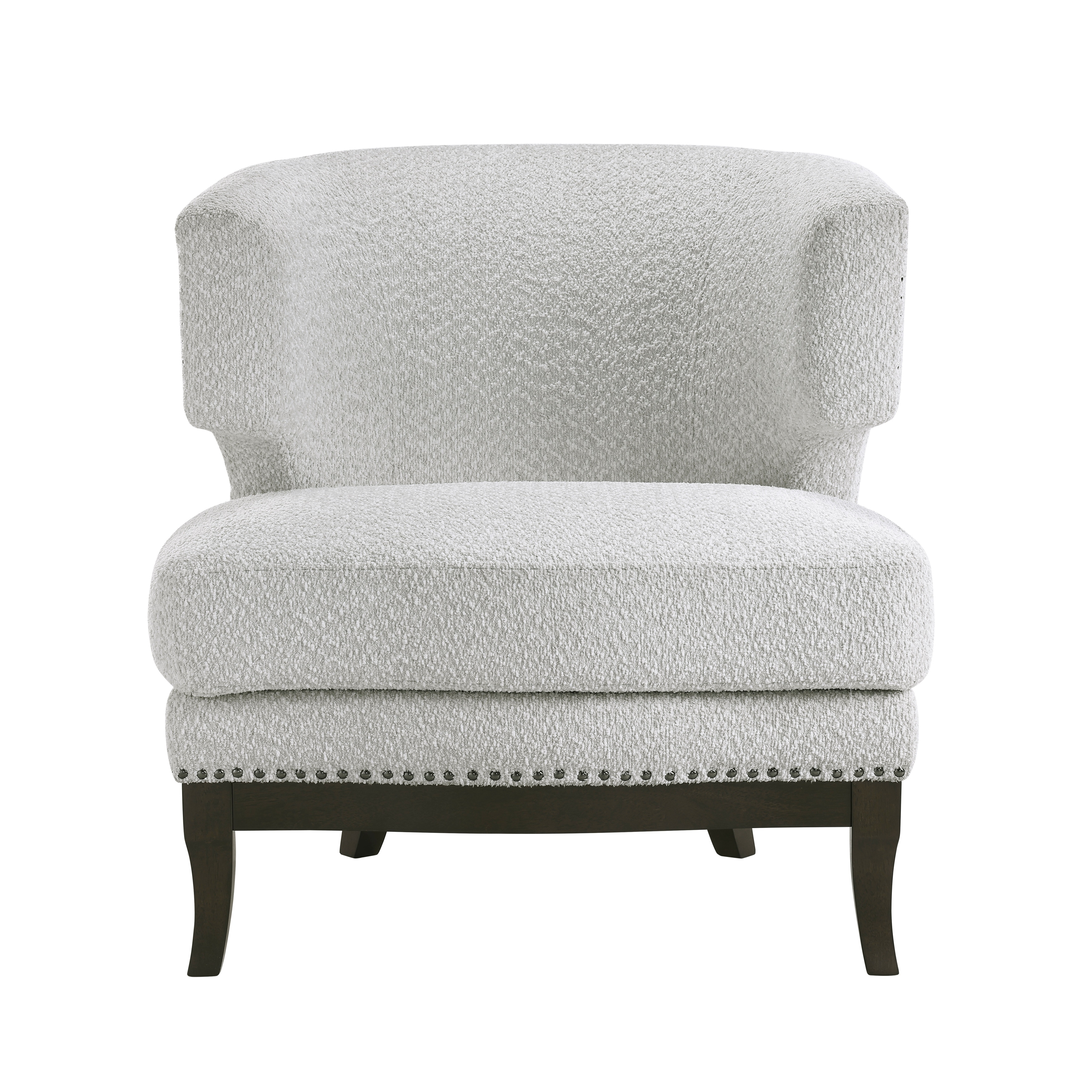 Contemporary Accent Chair Gray Boucle Fabric Upholstered Nailhead Trim Plywood Elegant Style Furniture 1pc Unique Barrel Back