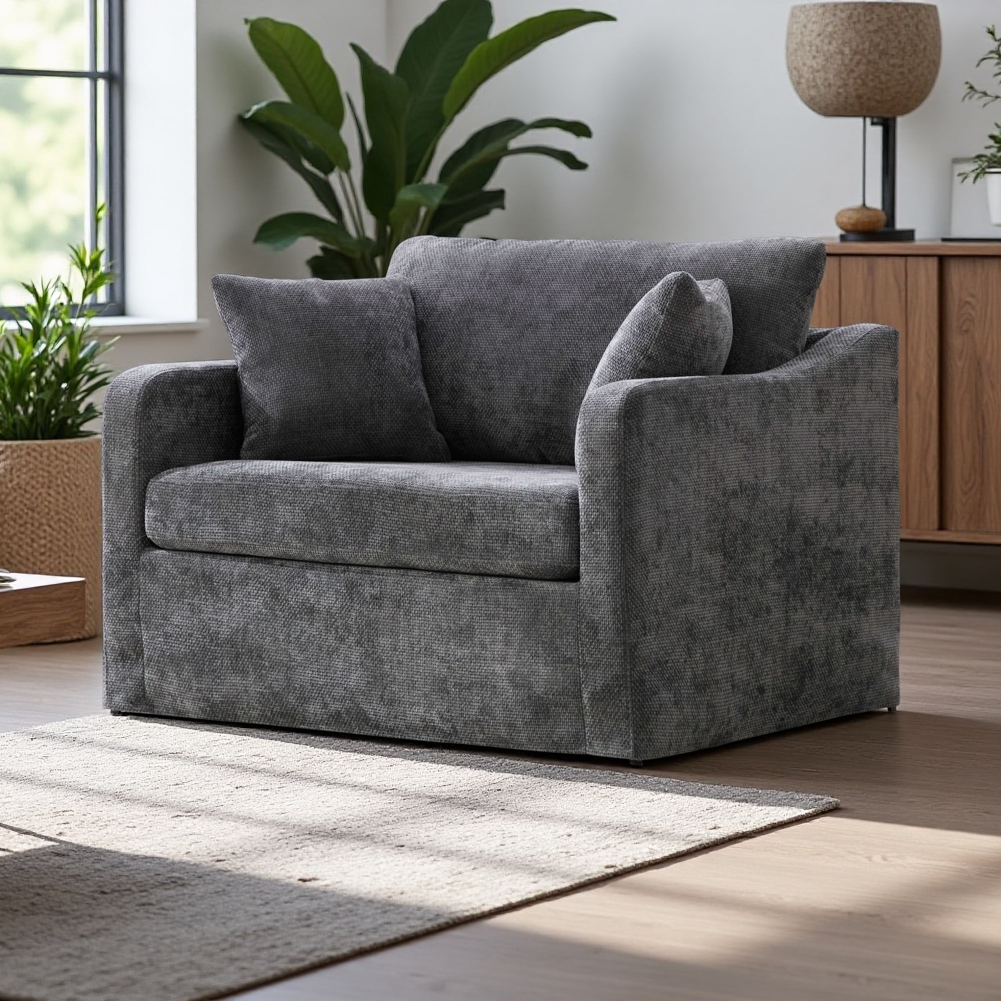 Chenille Armchair with Pocket Spring Seat and Two Bolster Pillows
