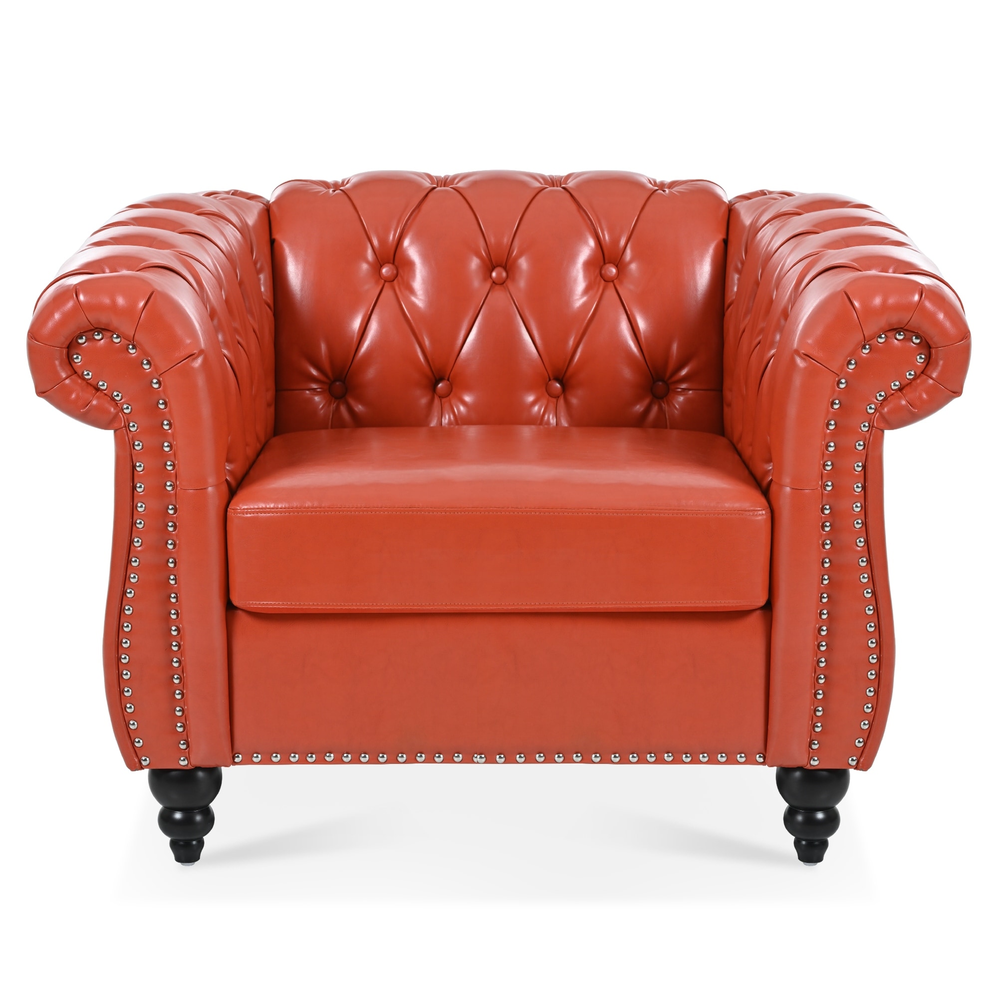Orange Leather Single Sofa Chair Barrel Chair with Nailhead Trim, Stylish Corner Chair Side Chair with Rolled Armrests