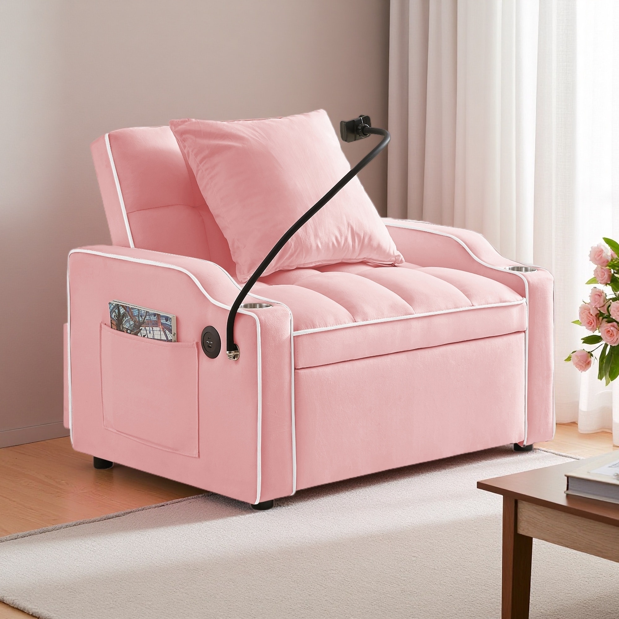 Velvet 3-in-1 Convertible Sleeper Chair Sofa Bed with USB Port, Pockets & Folding Design