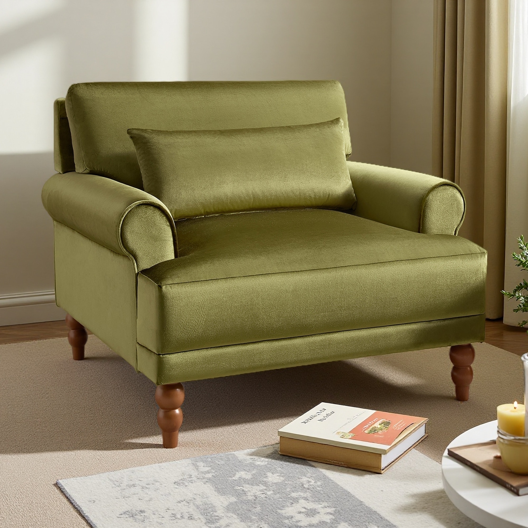 Mid-Century Modern Accent Chair with Soft Waist Cushion for Living Room and Bedroom
