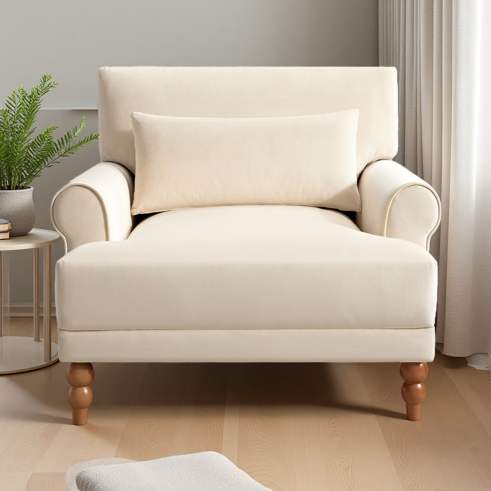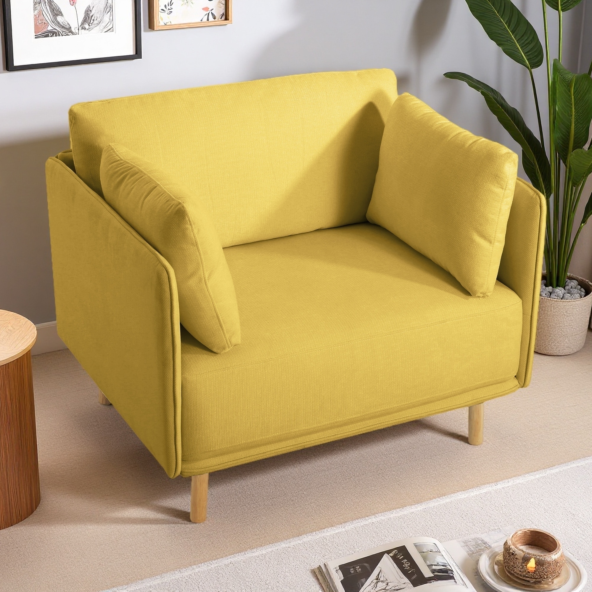 39" Fabric Accent Chair with Cushions, Sleek Armrests & Solid Wood Legs for Living Room
