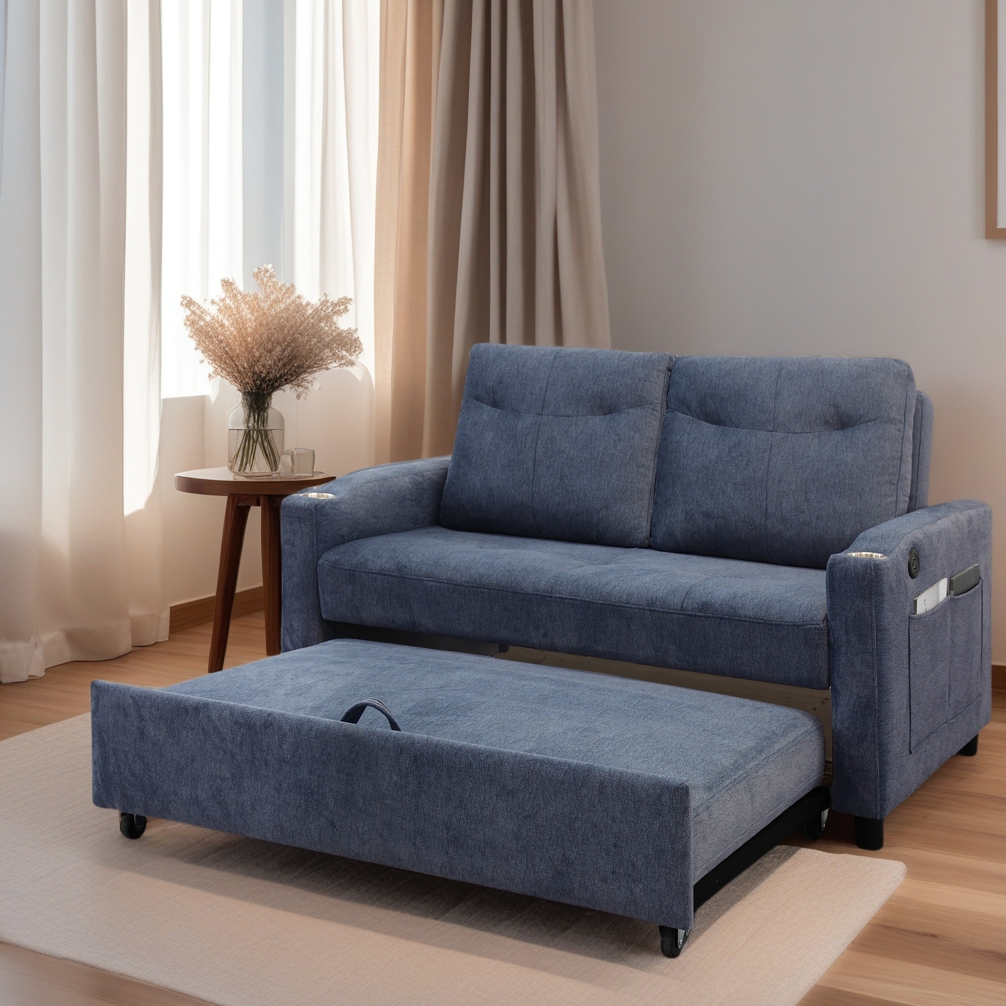 Pull Out Loveseat Sofa Convertible Sleeper Love Seat Bed, w3 USB Ports & 2 Cup Holders,360掳Swivel Phone Holder