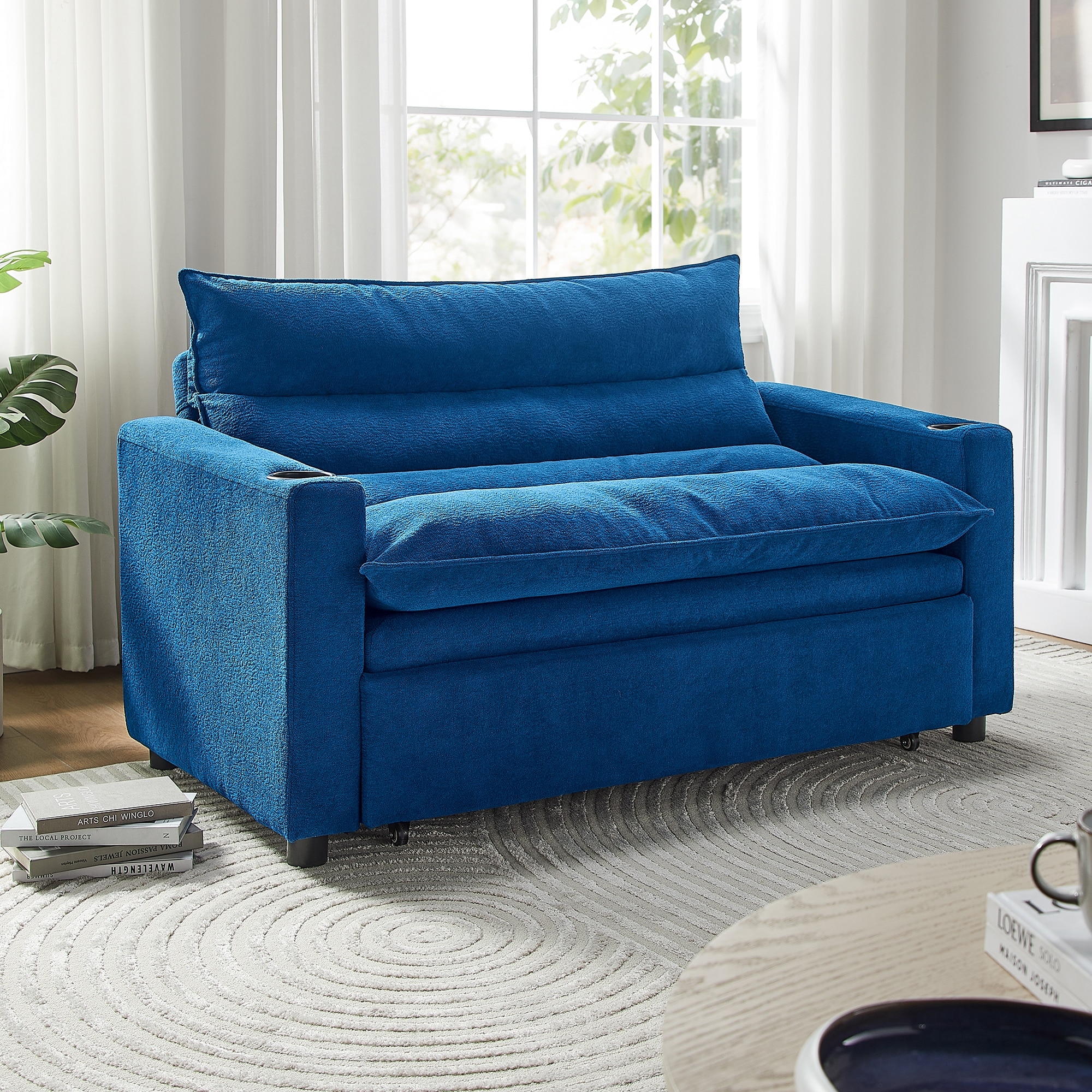 3-in-1 Convertible Sofa Bed with Adjustable 3-Position Backrest, Loveseat Sleeper Couch with Cup Holder