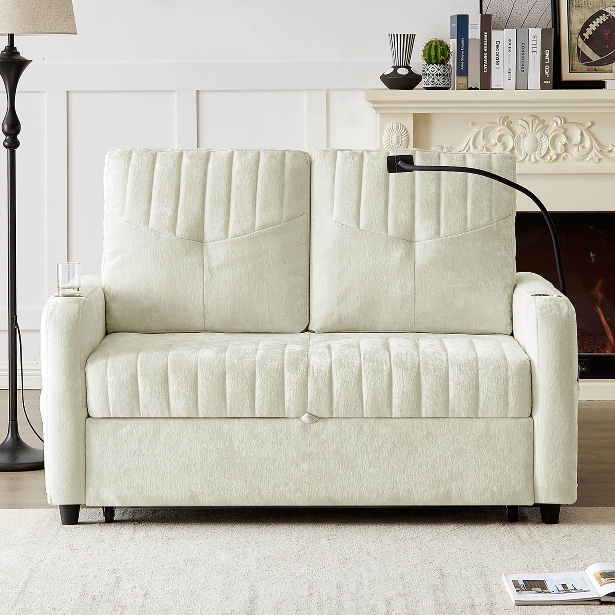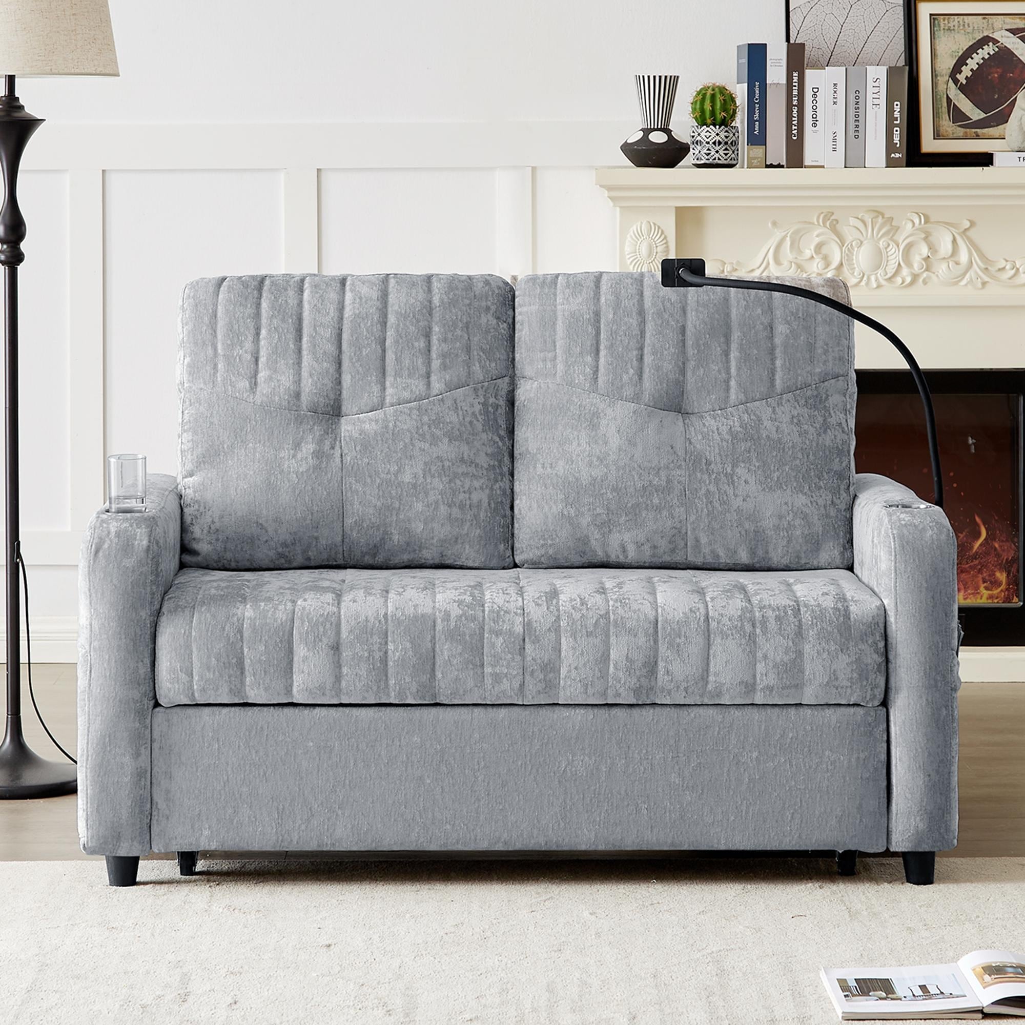 Multi-Functional Sleeper Sofa Pull-Out Loveseat with USB Charging, Sofa Bed with Adjustable Backrest and Storage Pockets