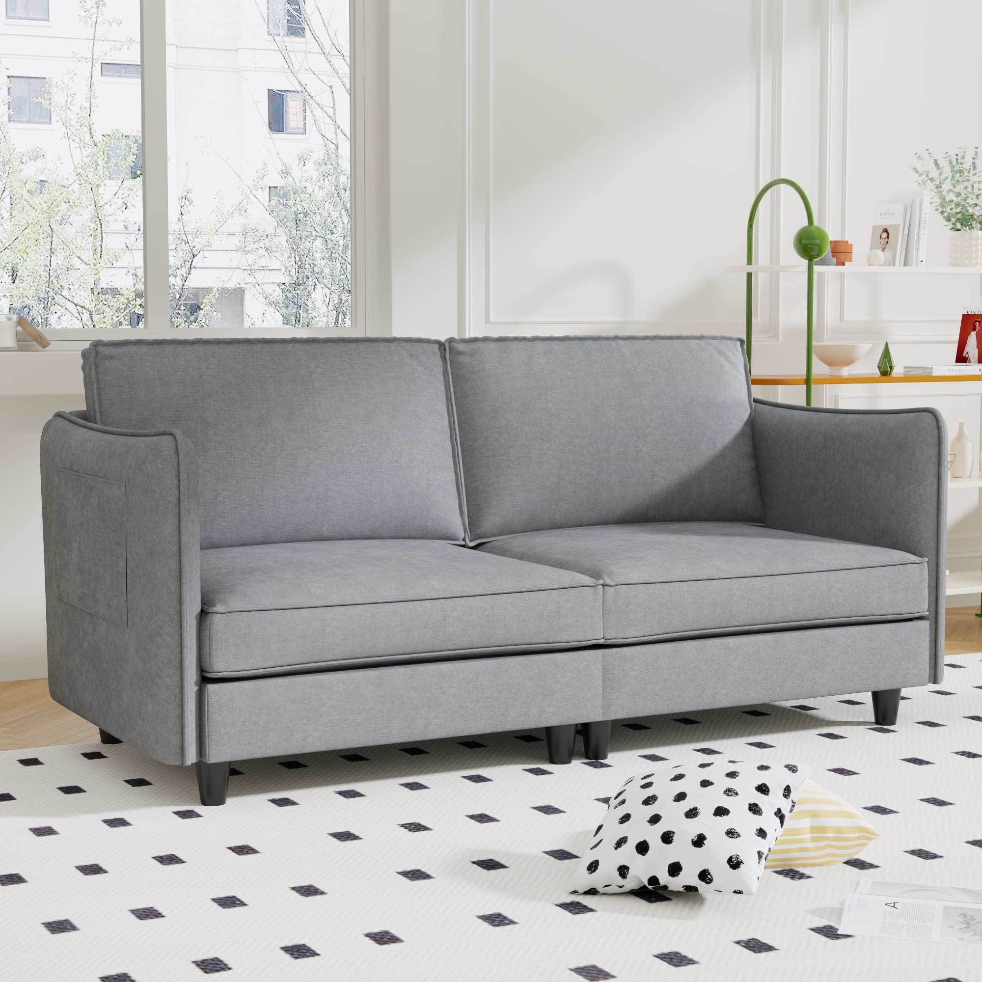 Simple Sofa Couch Loveseat with Side Storage Pockets, 2-Seater Settee Wood Sofa Couch with Wood Frame