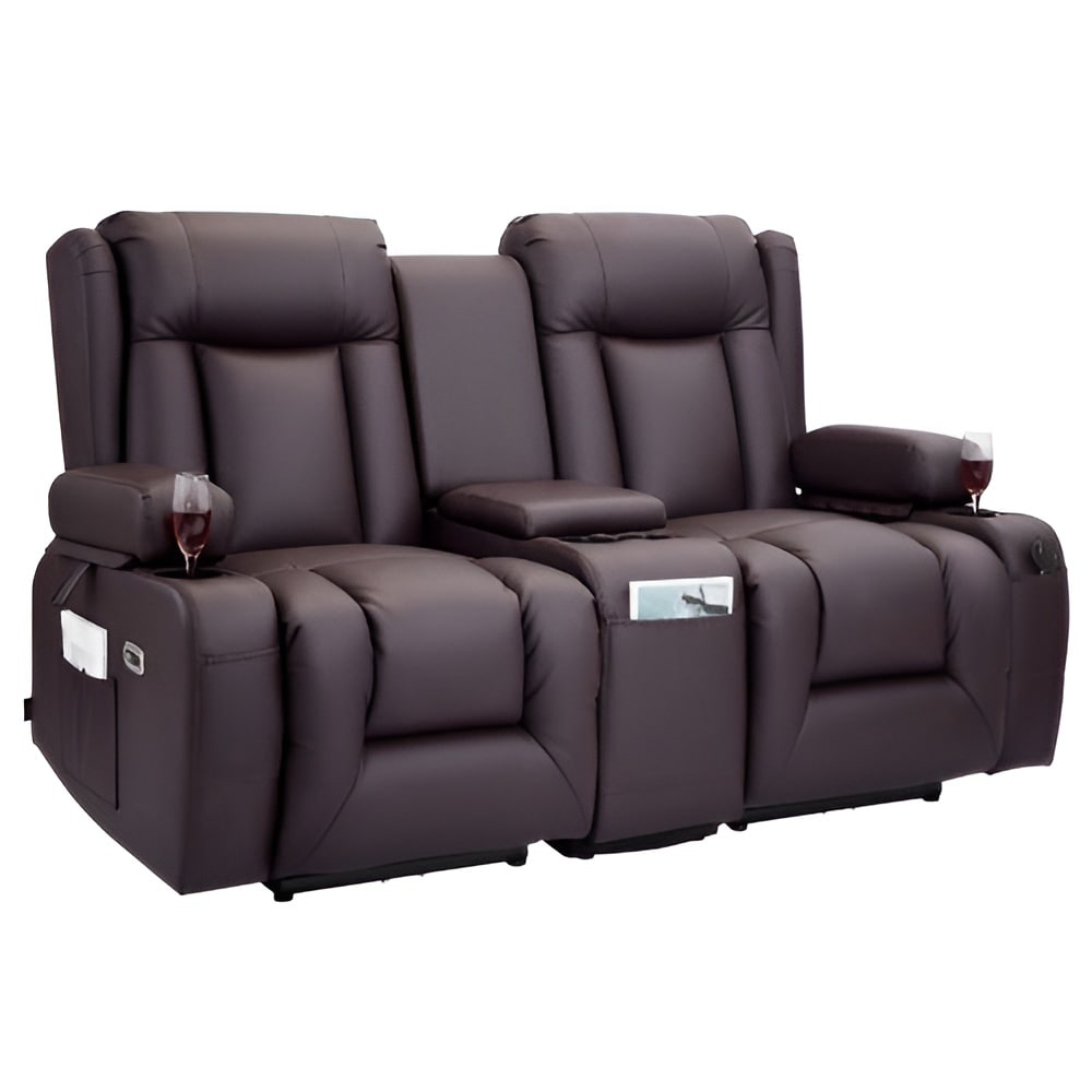 Brown PU Leather Electric Recliner Loveseat with Massage, Heating and USB Ports - 65.55 x 36.2 x 40.9 in