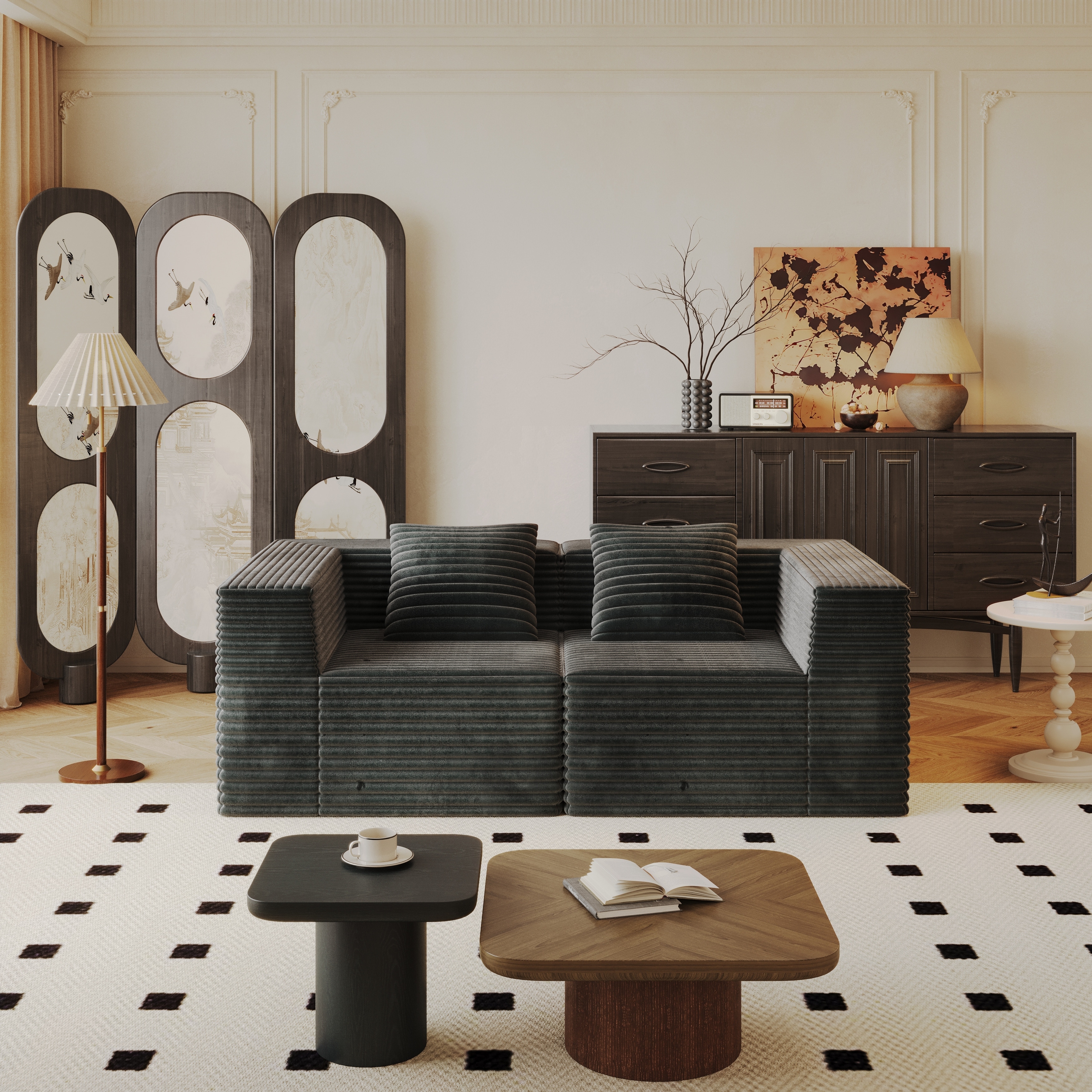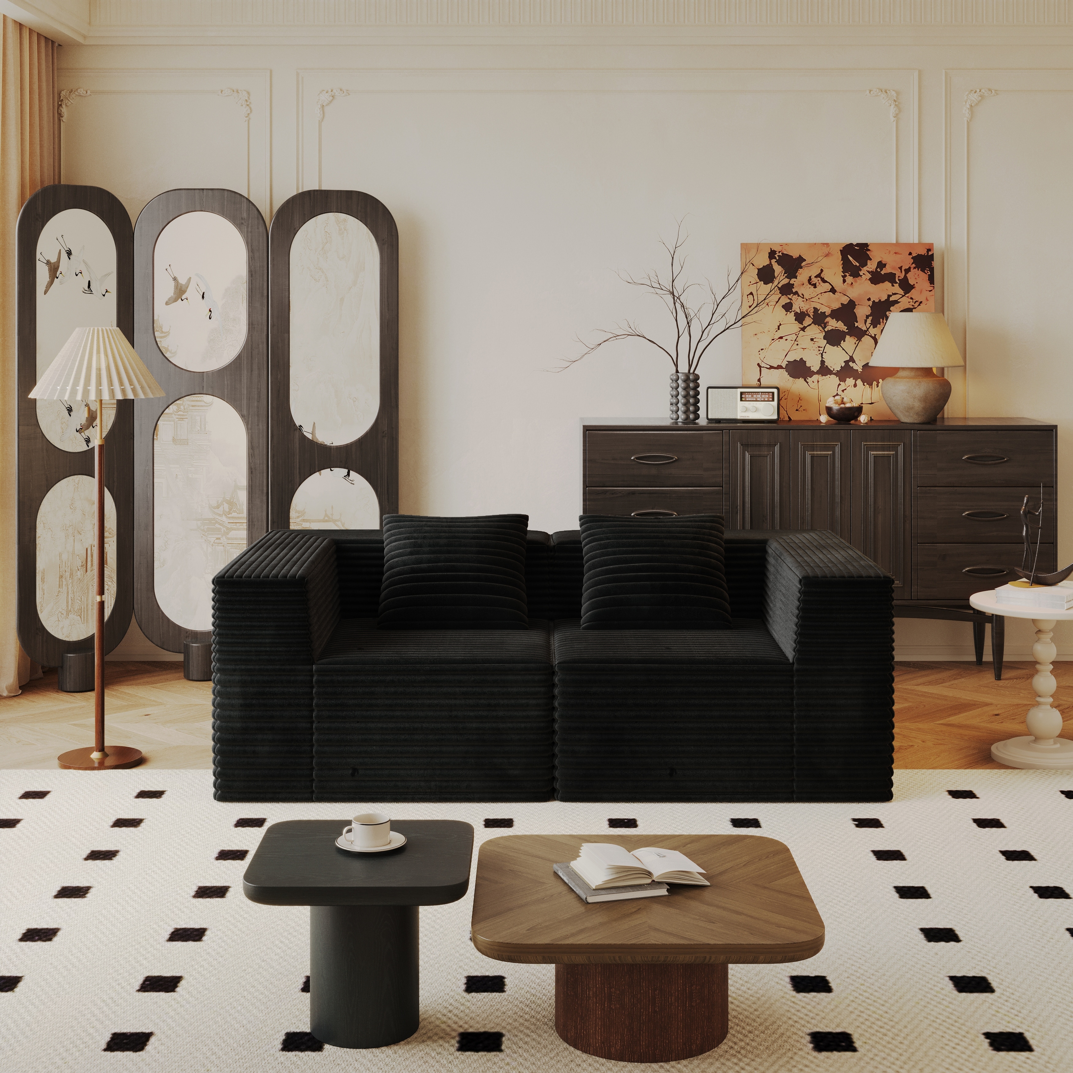 Velvet Fabric Double Sofa, Detachable Modular Upholstered Couch