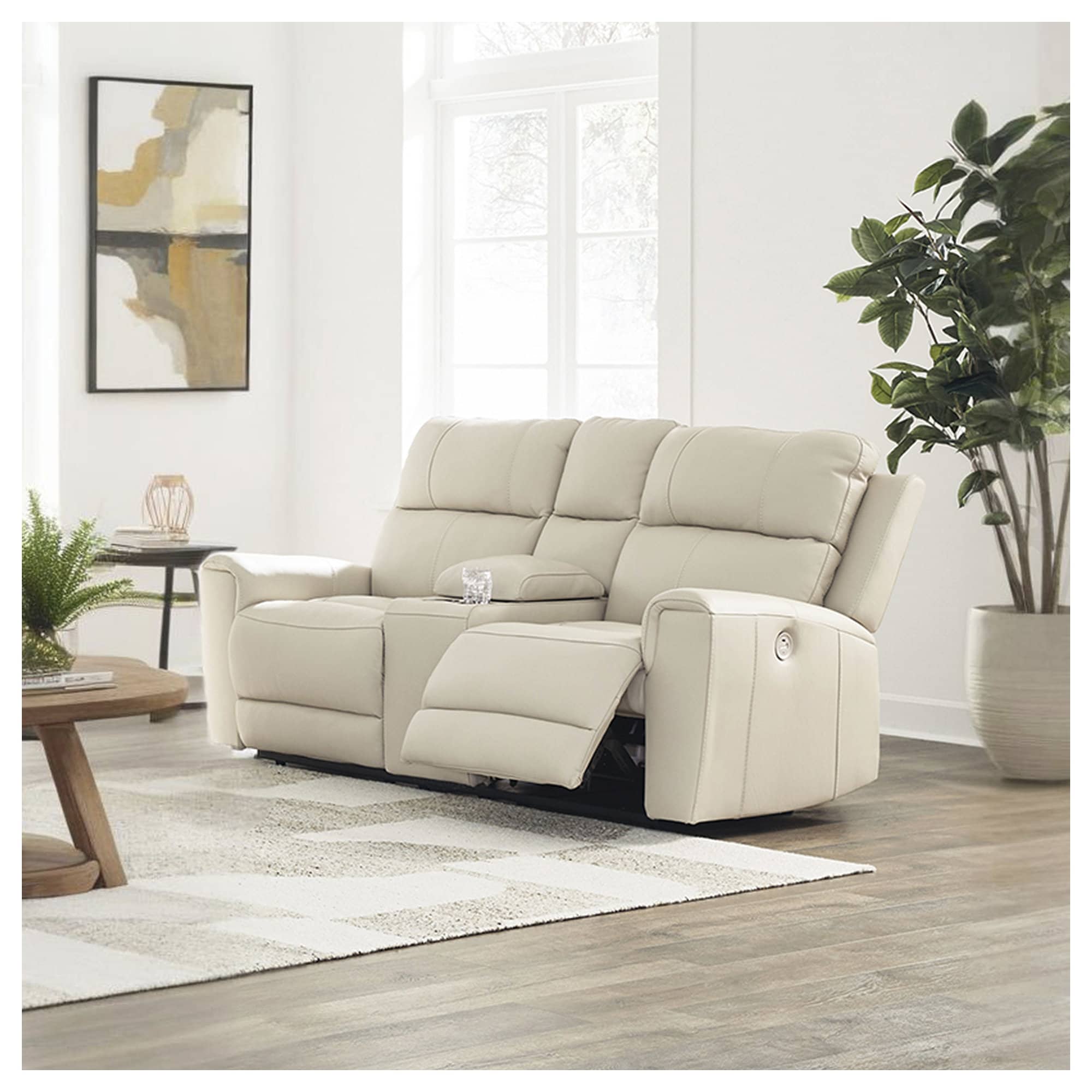 Signature Design by Ashley Dahlmoore Beige Power Reclining Loveseat with Console - 76" W x 42" D x 40" H