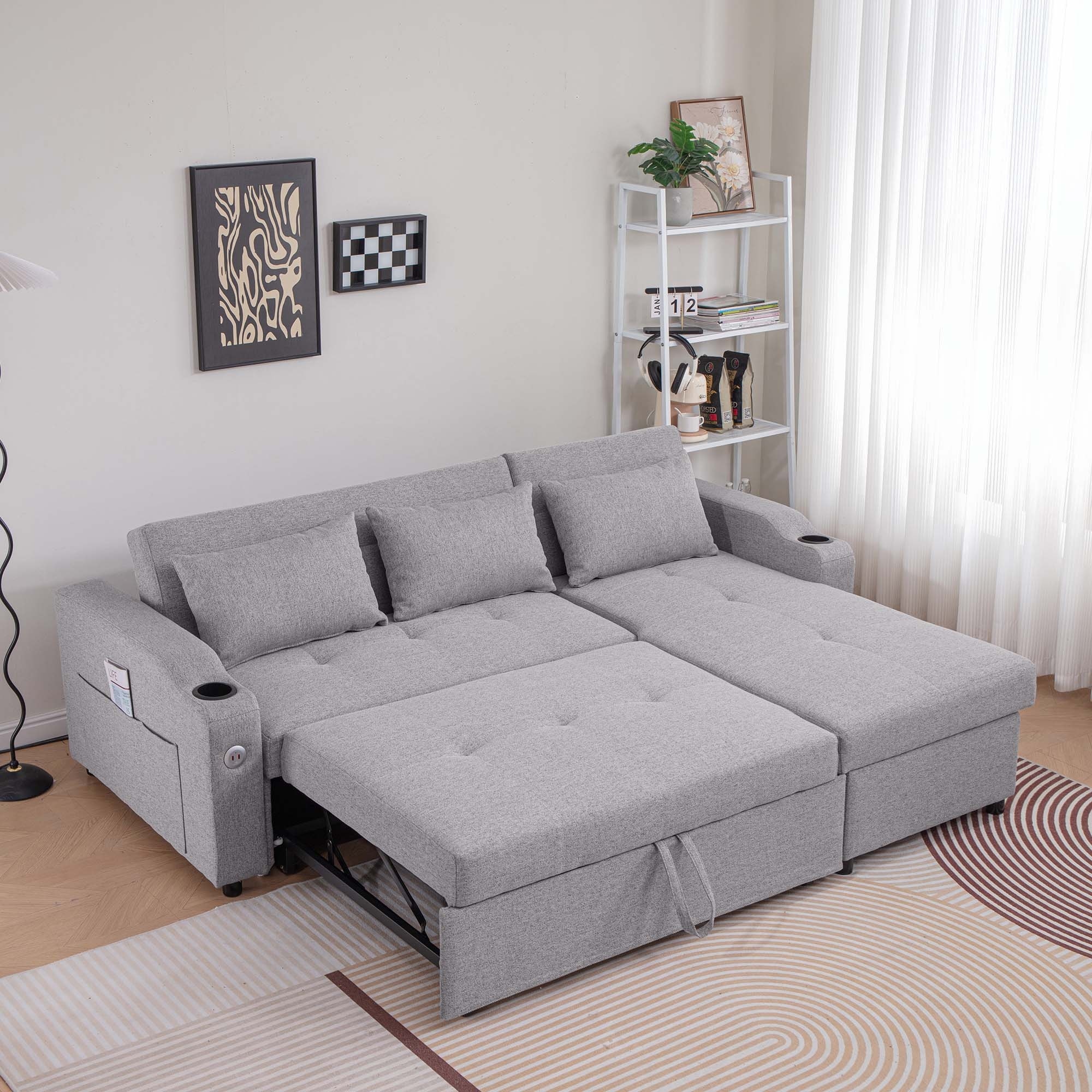 84" 3 in 1 Linen Sleeper with USB Ports and Cup Holders