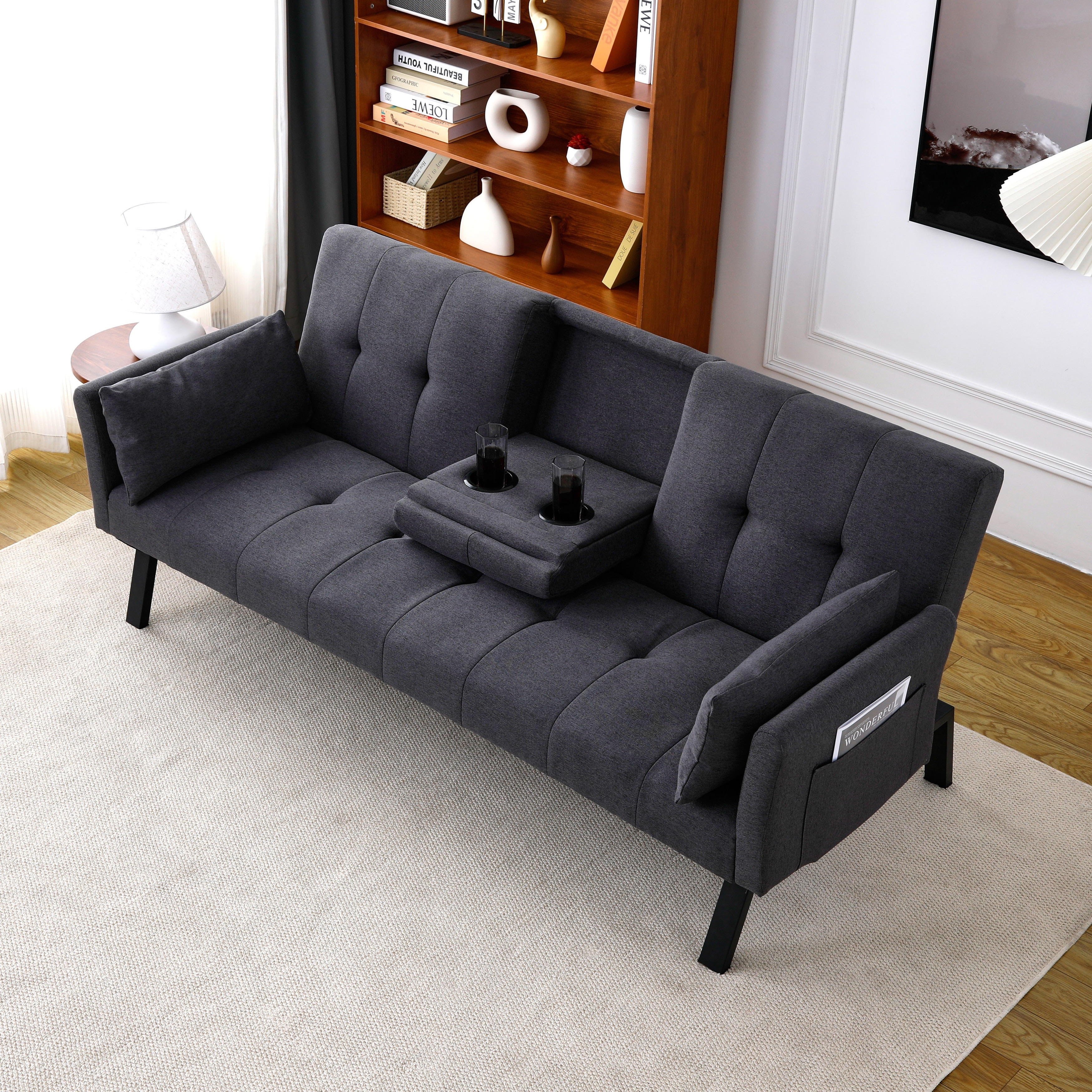 Loveseats Sofa Bed With Pull-Out Bed,Adjsutable Back And Two Arm Pocket